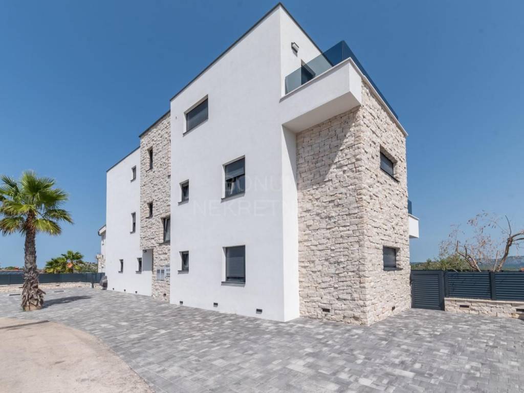 Zgrada u kojoj se apartman nalazi sastoji se od pet stambenih jedinica, a izgrađena je u skladu s visokim standardima i modernim arhitektonskim rješenjima. Velike staklene površine osiguravaju puno svjetla, a odabrani materijali jamče kvalitetu i dugotrajnost.
