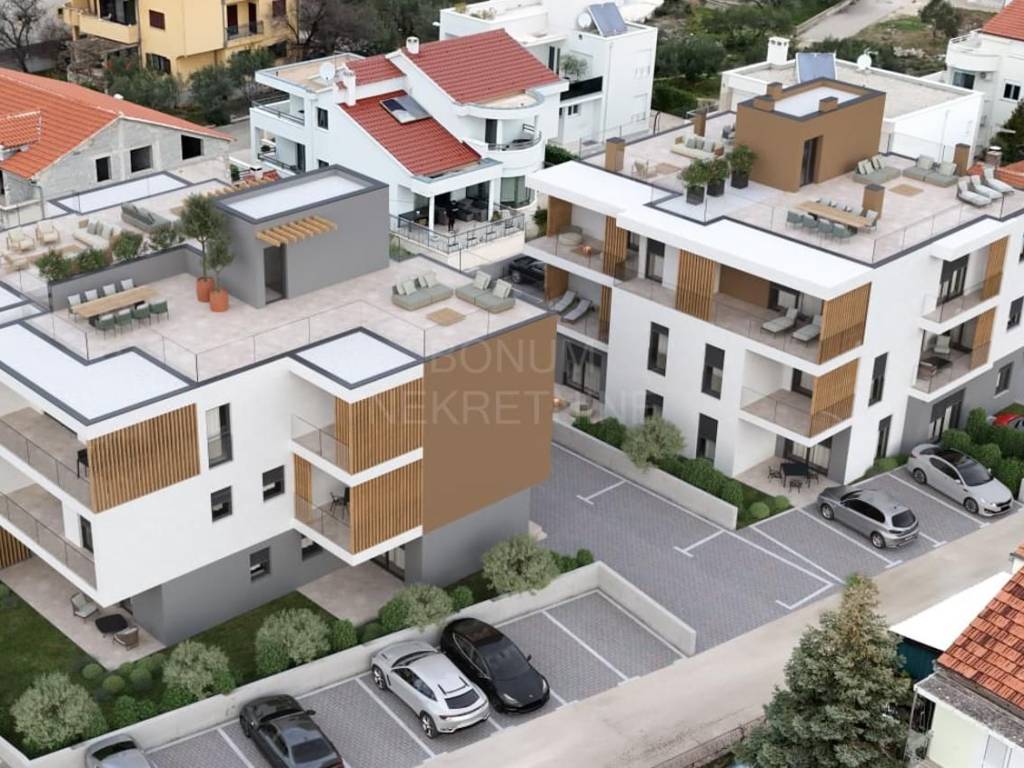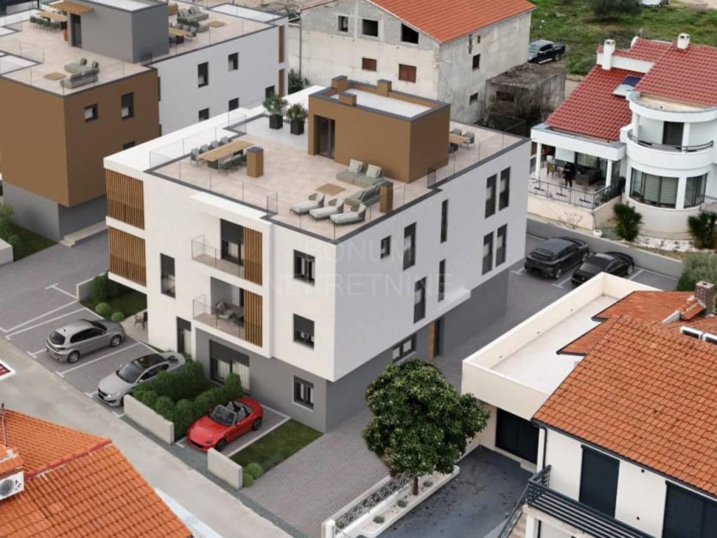 Na prodaju je stan s dvije spavaće sobe na prvom katu moderne novogradnje u Vodicama. Ukupna korisna površina iznosi 72,26 m², a sastoji se od hodnika, dvije spavaće sobe, kupaonice, praonice, dnevnog boravka povezanog s kuhinjom i blagovaonicom te prostrane terase od 16,25 m². Stanu pripada jedno parkirališno mjesto.