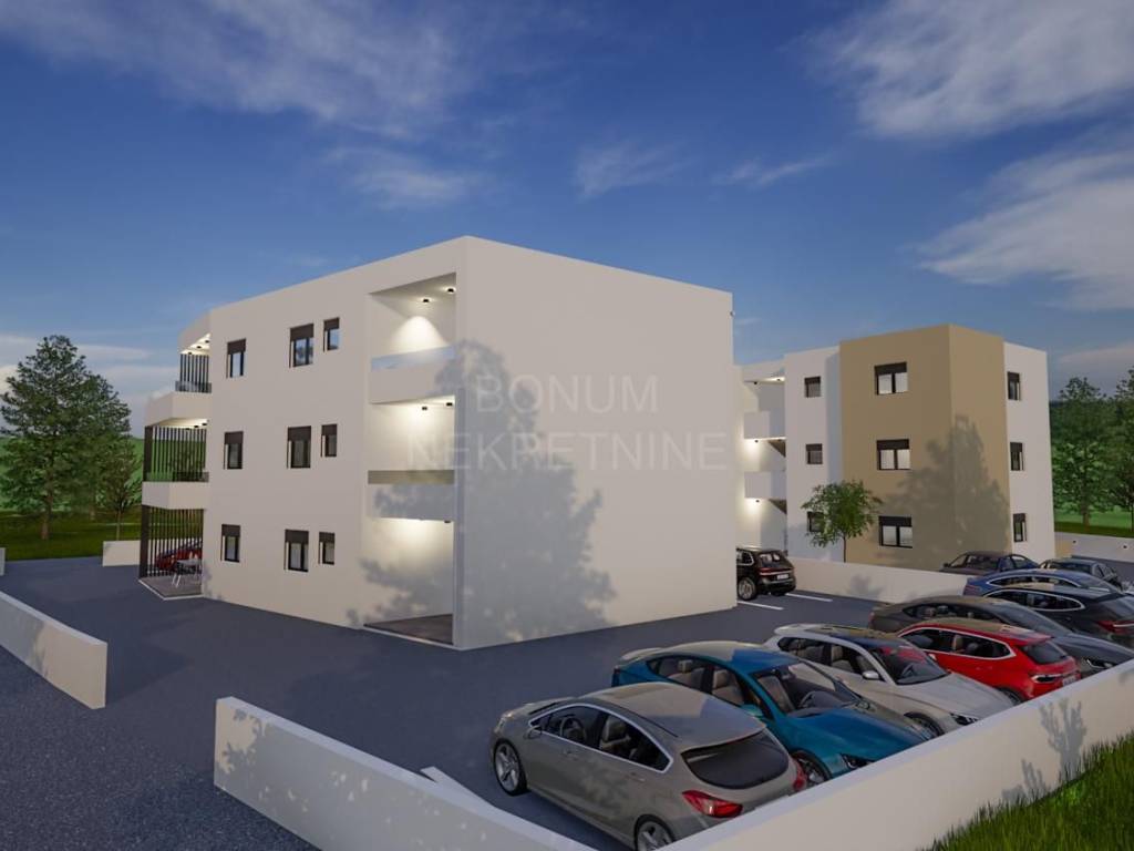 Na prodaju je stan na prvom katu novogradnje u Vodicama, ukupne neto površine 70,05 m². Sastoji se od ulaza, hodnika, dvije spavaće sobe, kupaonice, kuhinje s blagovaonicom i dnevnim boravkom te terase površine 13,98 m². Stanu pripada i jedno parkirno mjesto.
