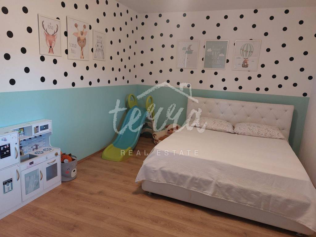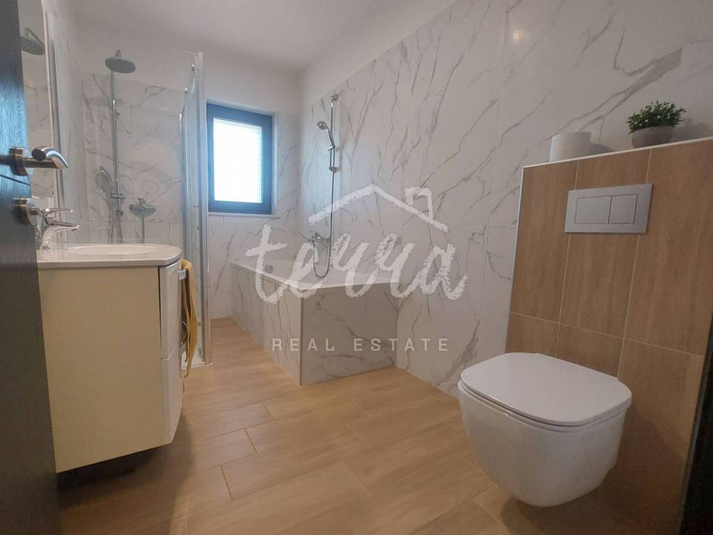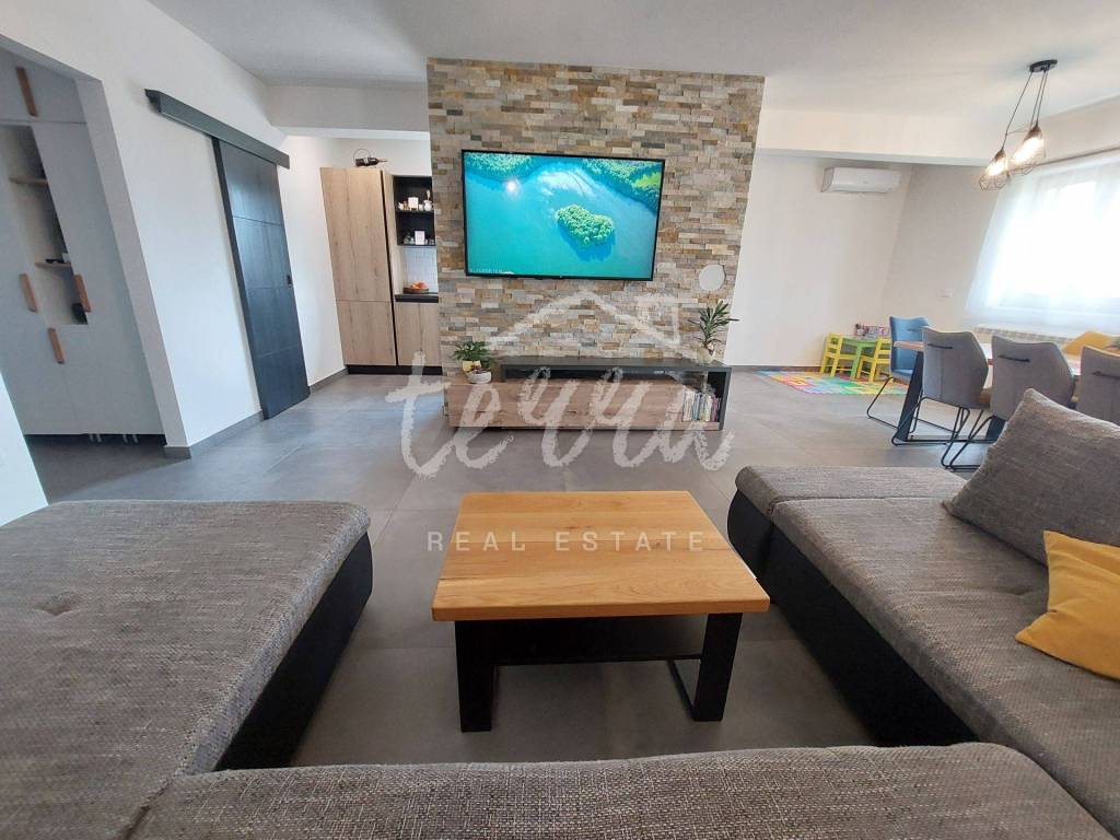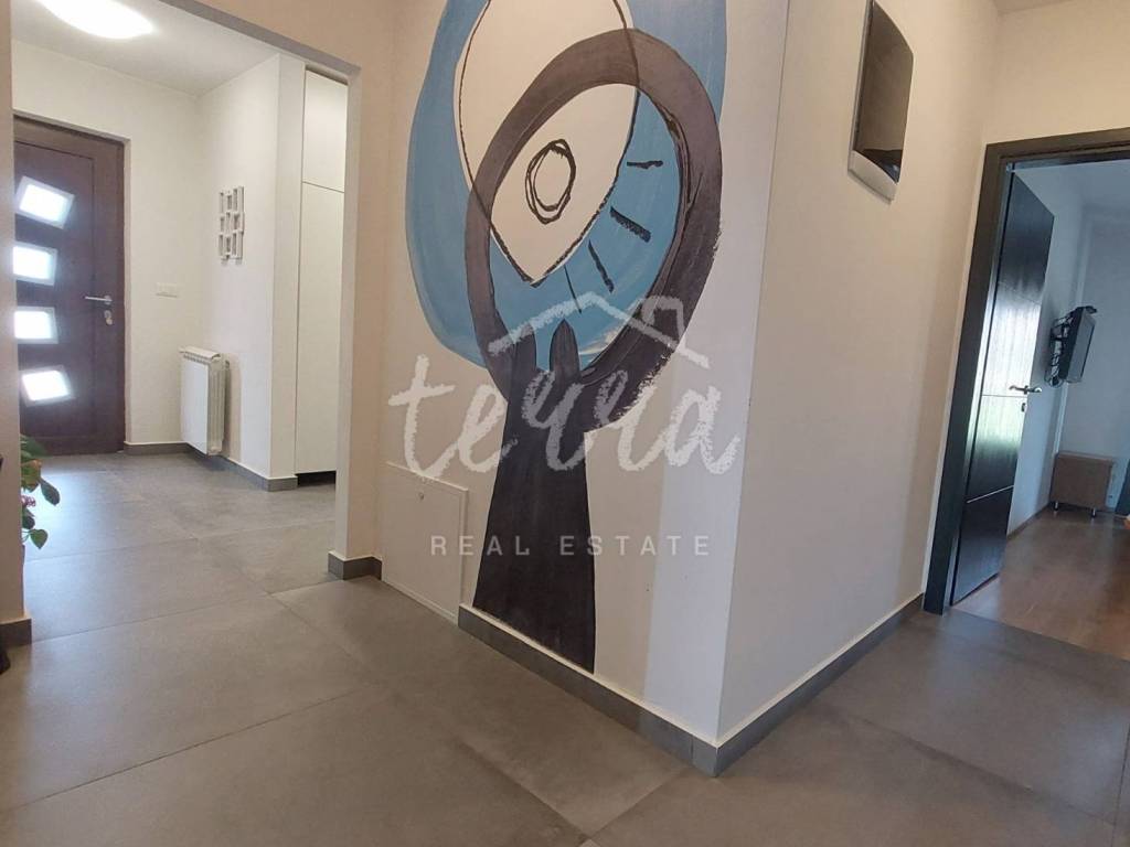 tri spavaće sobe,kupaona,wc,ostava i kotlovnica.Kuća je prostrana,moderno opremljena te visokokvalitetno uređena.