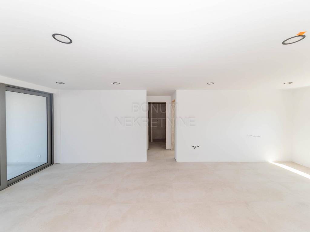 Raspored je idealan za obiteljski život ili odmor: ulazno predsoblje, hodnik, tri spavaće sobe s izlazom na terasu, kupaonice, dva toaleta, praktična ostava i praonica te prostran dnevni boravak povezan s modernom kuhinjom i blagovaonicom. Uz to, tu su lođa i veliki balkon.