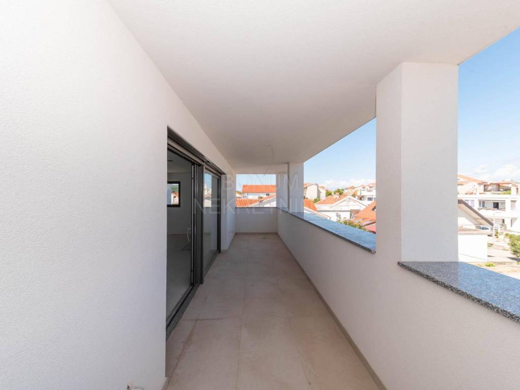 U mirnom dijelu Vodica prodaje se prostrani trosobni apartman koji zauzima cijelu etažu prvog kata manje stambene zgrade novije gradnje. Stan raspolaže s ukupno 121,59 m² stambenog prostora i velikom privatnom terasom koja ga okružuje, stvarajući jedinstveni osjećaj udobnosti i otvorenosti.