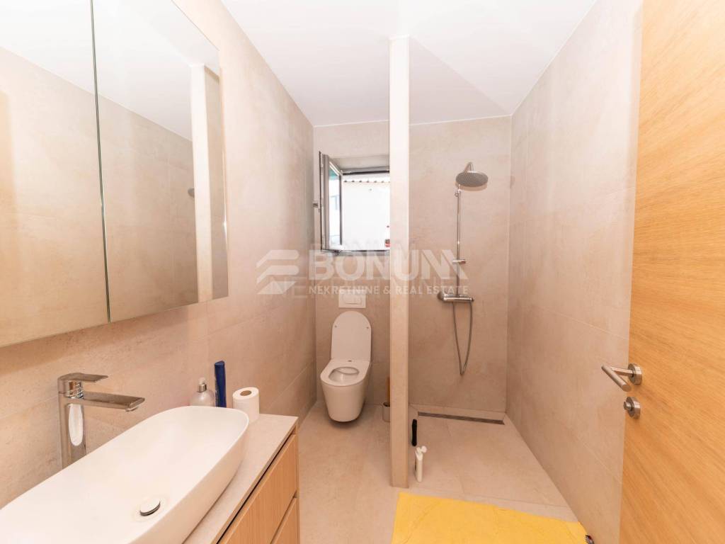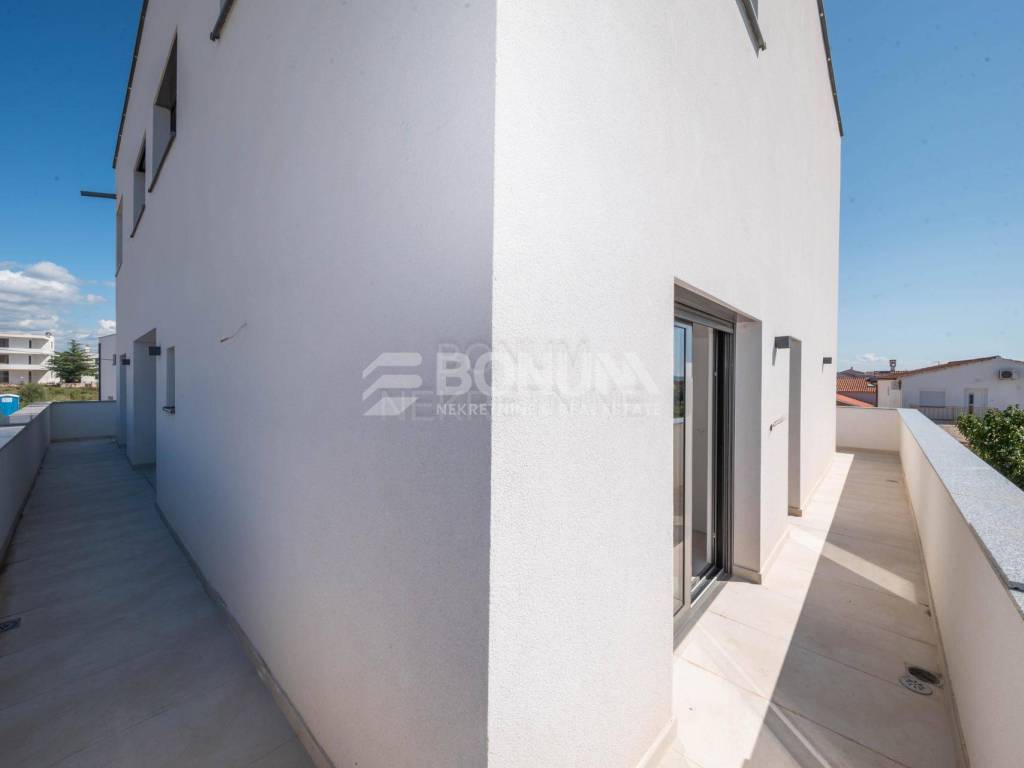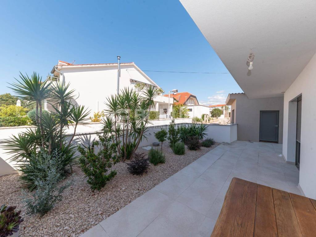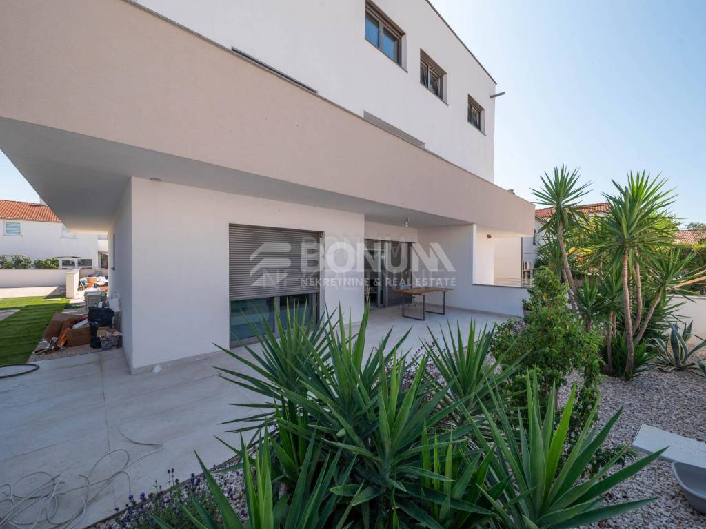 Na prodaju je novoizgrađena višestambena zgrada s ukupno tri stambene jedinice i pomoćnim objektom površine 40 m². Objekt se sastoji od tri etaže – prizemlja, prvog i drugog kata – s ukupno 406 m² korisne površine, smješten na parceli od 811 m². Zgrada je novogradnja izgrađena od vrhunskih materijala, a u dvorištu se nalazi bazen površine 50 m² s protustrujnim plivanjem i mogućnošću grijanja, vanjski tuš te prostrano parkiralište za do 11 vozila. Okućnica je hortikulturno uređena i oplemenjena mediteranskim biljem i stablima. Svaka etaža čini zaseban stan sa zasebnim ulazom. U prizemlju se nalazi komforan trosoban stan koji se sastoji od predsoblja, tri spavaće sobe, dvije kupaonice, kuhinje, blagovaonice i dnevnog boravka. Stan je u potpunosti namješten visokokvalitetnim, po mjeri izrađenim namještajem. Na prvom katu nalazi se također komforan trosoban stan s dvije kupaonice i terasom, dok se na drugom katu nalazi prostran dvosoban stan s velikom terasom. Iz stana na drugom katu omogućen je izlaz na krov, gdje se može urediti krovna terasa s panoramskim pogledom. Cijeli objekt opremljen je podnim grijanjem, podovi su obloženi vrhunskom keramikom, a aluminijska stolarija s troslojnim staklom ima rolete, komarnike i električne podizače roleta. Nekretnina se nalazi u mirnom dijelu Vodica, okružena novogradnjama, u blizini mora i svih potrebnih sadržaja, što je čini idealnim izborom za ugodan obiteljski život ili investiciju u turizam.