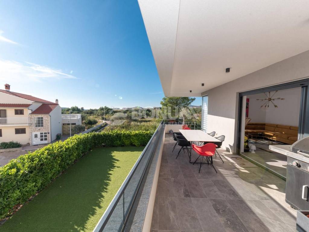 Vodice su jedno od najpoznatijih turističkih mjesta na Jadranu, udaljeno svega nekoliko kilometara od Šibenika. Prepoznatljive su po svom šarmantnom starom gradu, bogatoj gastronomskoj ponudi i živopisnim plažama. Ovaj stan predstavlja izvrsnu priliku za one koji traže moderan, prostran dom ili luksuznu nekretninu za odmor u mirnom okruženju nadomak mora.