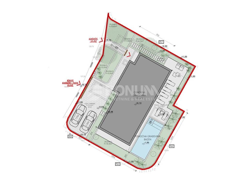U podrumu je planirana velika igraonica/konoba s predprostorom i stubištem, što ovu nekretninu čini posebno praktičnom za cjelogodišnje korištenje. Okućnica je projektirana s privatnom zonom bazena i sunčališta, a osigurana su i dva parkirna mjesta na parceli te organizirani pristupi (glavni pješački i kolni ulaz te dodatni pješački ulaz).