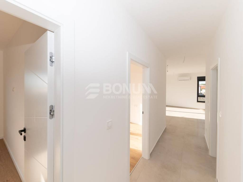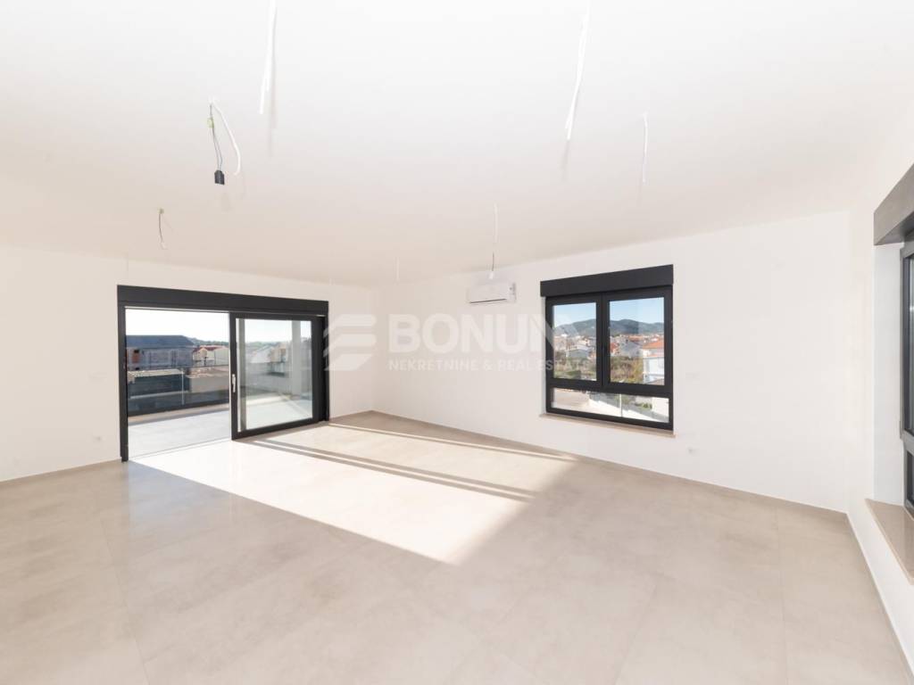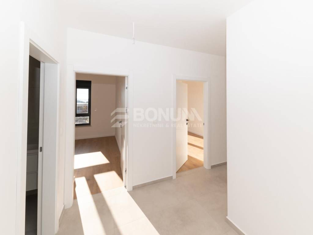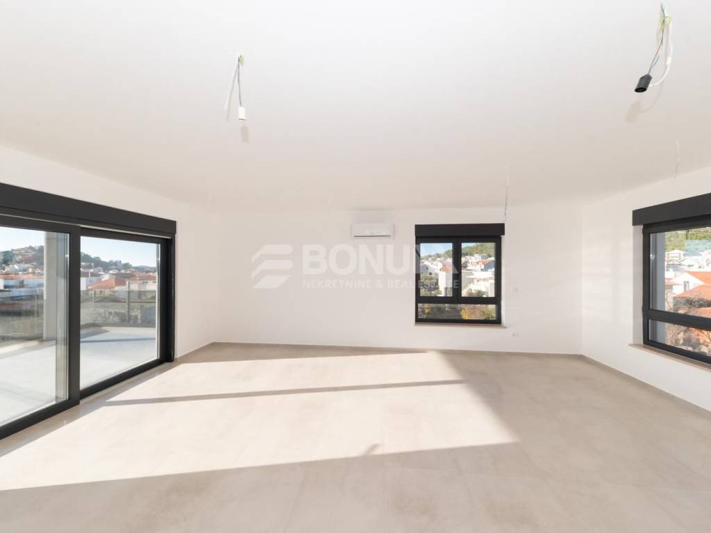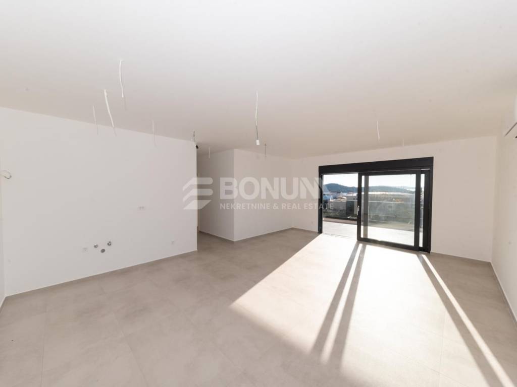 Apartman se nalazi u novogradnji u Tribunju, zgradi smještenoj na odličnoj lokaciji svega 550 m od mora i plaže te 400 m od centra mjesta. Zgrada je dizajnirana prema najvišim standardima gradnje, s naglaskom na kvalitetu i udobnost. Koriste se visokokvalitetni materijali, uključujući vrhunsku keramiku, parkete i sanitarije. Podno grijanje je postavljeno u cijelom stanu, dok su klima uređaji ugrađeni u sve sobe i dnevni boravak. PVC stolarija dolazi s električnim podizačima i komarnicima, a fasada je obložena stiroporom debljine 10 cm, osiguravajući izvrsnu toplinsku izolaciju. Završetak radova predviđen je za proljeće 2026. godine.
