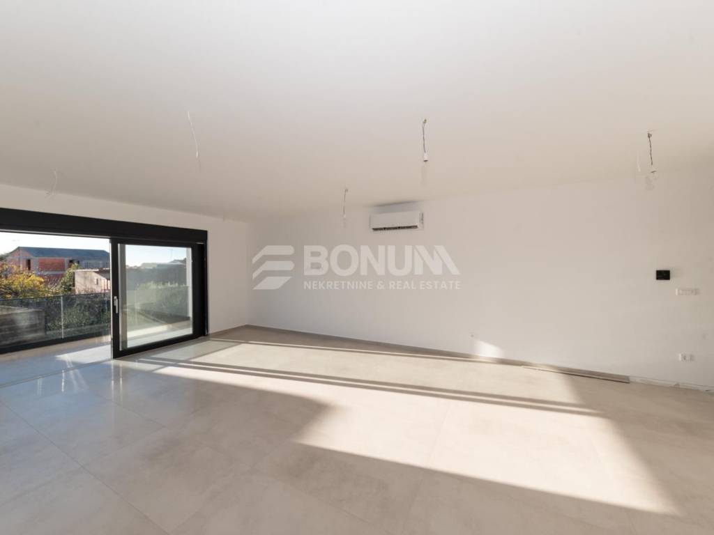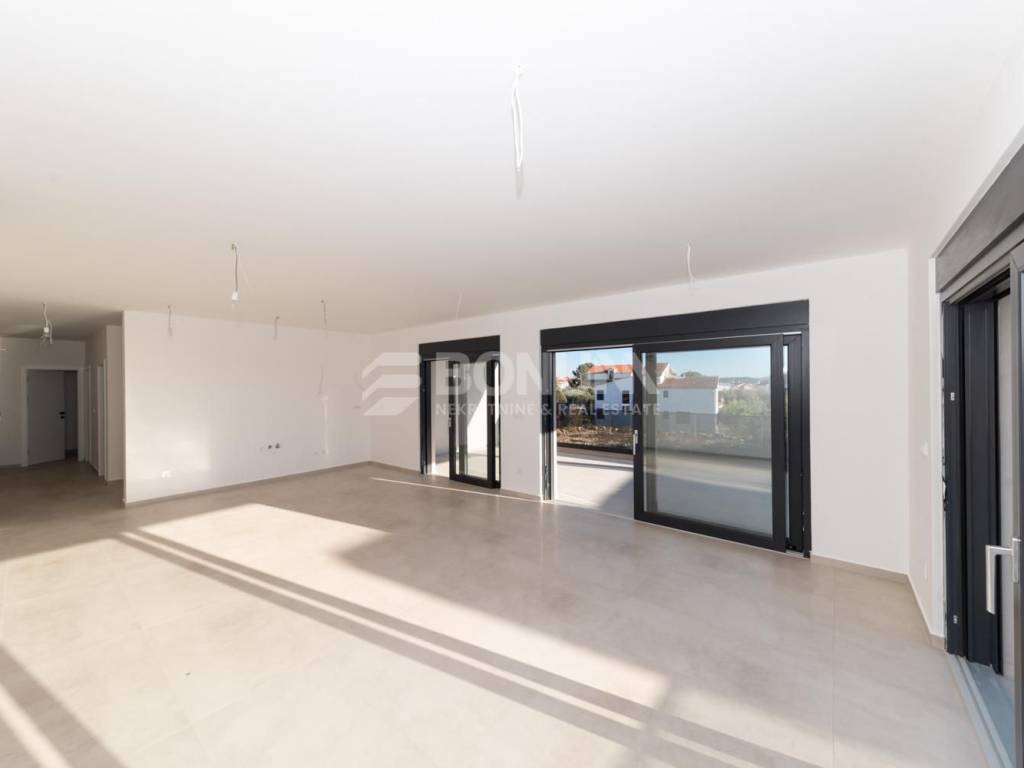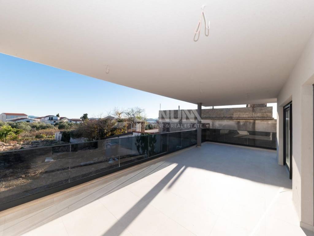 Apartman se nalazi u novogradnji u Tribunju, zgradi smještenoj na odličnoj lokaciji svega 550 m od mora i plaže te 400 m od centra mjesta. Zgrada je dizajnirana prema najvišim standardima gradnje, s naglaskom na kvalitetu i udobnost. Koriste se visokokvalitetni materijali, uključujući vrhunsku keramiku, parkete i sanitarije. Podno grijanje je postavljeno u cijelom stanu, dok su klima uređaji ugrađeni u sve sobe i dnevni boravak. PVC stolarija dolazi s električnim podizačima i komarnicima, a fasada je obložena stiroporom debljine 10 cm, osiguravajući izvrsnu toplinsku izolaciju. Završetak radova predviđen je za proljeće 2026. godine.