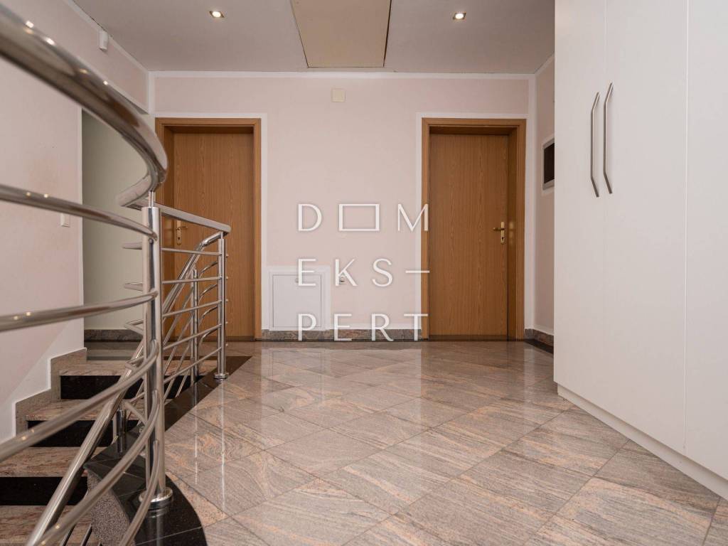 Vanjska stolarija je drvena u prizemlju, na katu je postavljena aluminijska. Na podovima postavljen parket u prizemlju (dnevni boravak i spavaća soba), keramičke pločice i mramor na stubištu. Na podovima na katu je u sobama postavljen laminat.