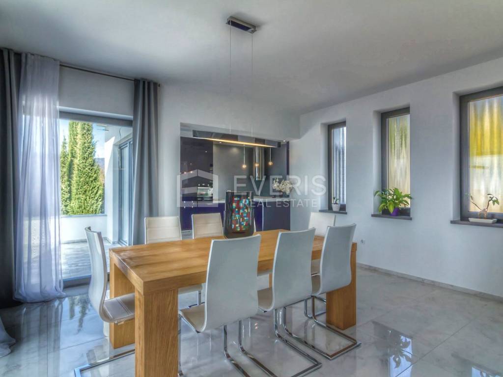 Vila se sastoji od prizemlja i kata, na svakoj etaži po jedan stan, ukupne površine 389,87 m2: