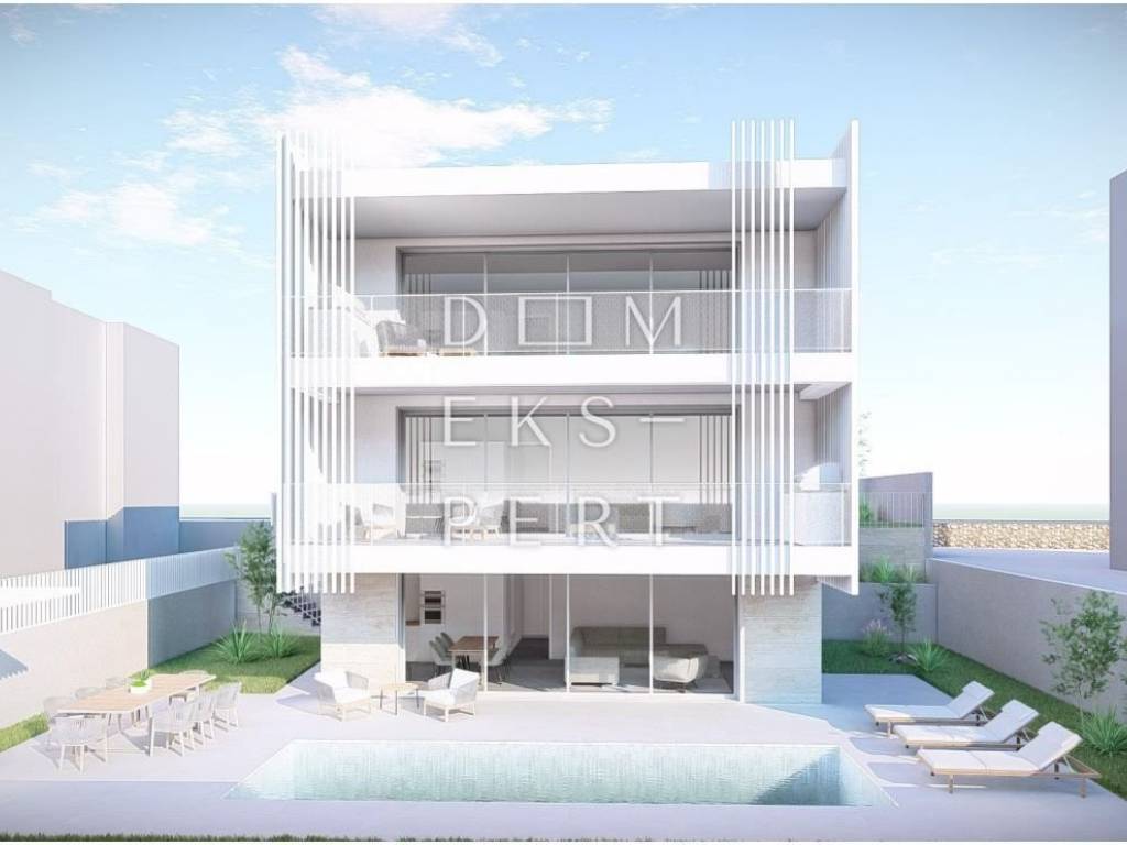 Oprema: - aluminijska stolarija s roletama i komarnicima - protuprovalna ulazna vrata - video portafoni - troslojni parket prilagođen za podno grijanje - kupaonice opremljene sanitarnim uređajima i opremom vrhunske kvalitete - grijanje dizalicom topline (podno grijanje) - klima uređaji u svakoj prostoriji