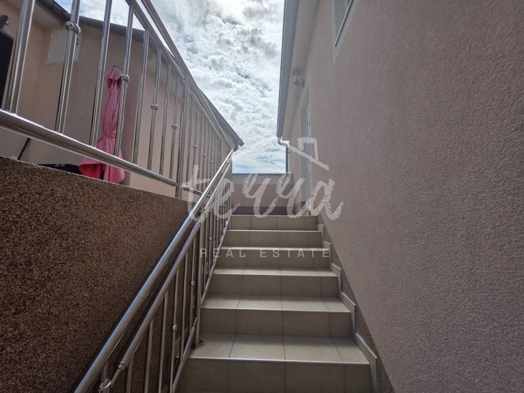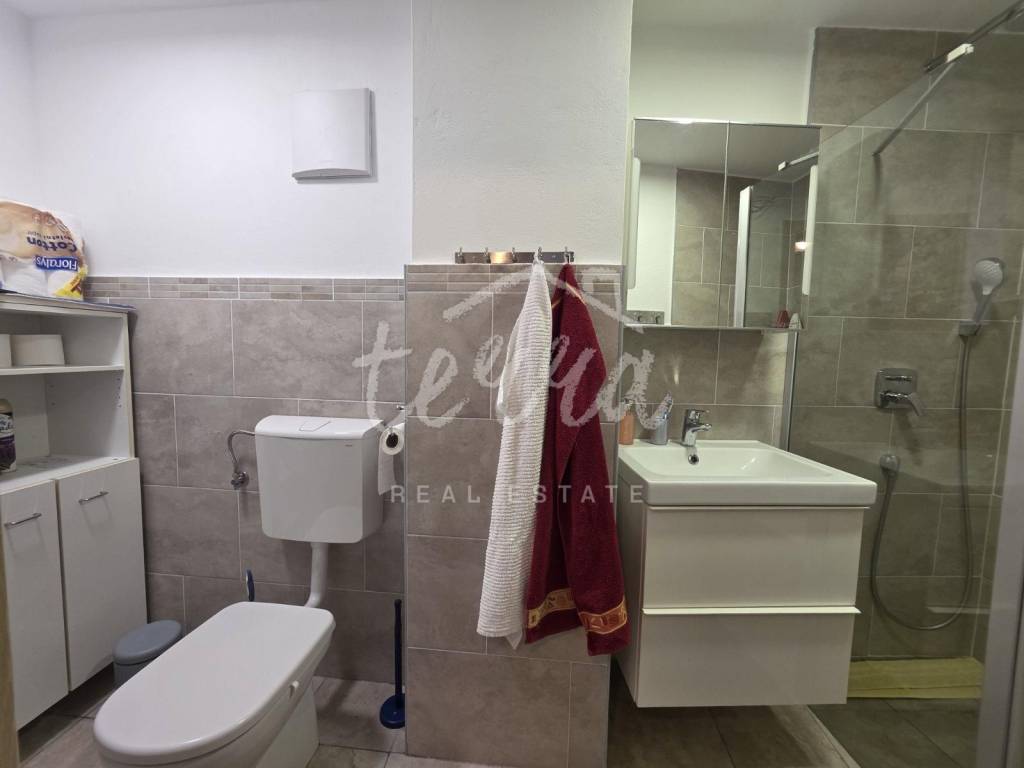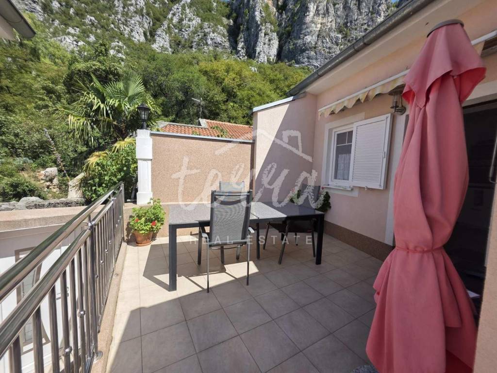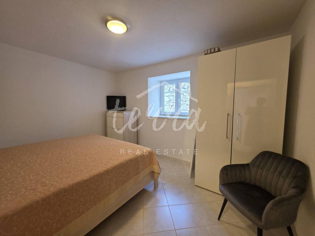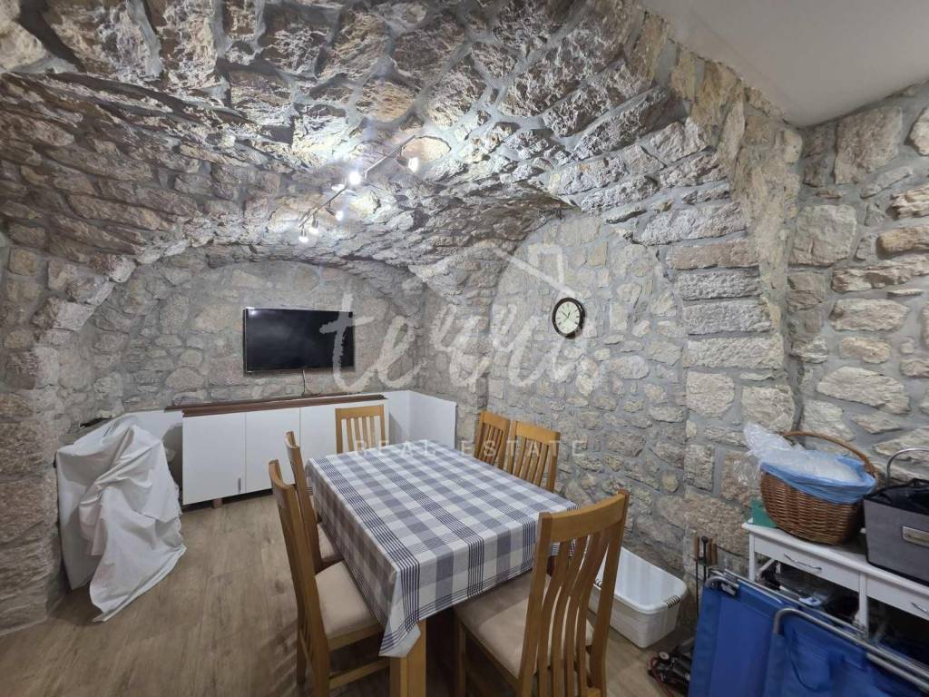 Prodaje se kuća na dvije etaže smještena u mirnom i opuštajućem okruženju, idealna za cjelogodišnji boravak, odmor ili kao sigurna investicija. U prizemlju se nalazi stan s dvije spavaće sobe, kuhinjom i kupaonicom, dok posebnu vrijednost prostoru daje kamena prostorija koja se može koristiti kao konoba ili dnevni boravak. Na istom nivou nalazi se i garaža. Vanjskim stepenicama dolazi se na kat gdje su smještene dvije stambene jedinice – garsonijera i dvosobni stan – povezane zajedničkom terasom. Prvi kat pruža prekrasan pogled na more. Nekretnina se prodaje potpuno namještena i spremna za korištenje, a u vlasništvu je i parkirno mjesto. Zahvaljujući mirnoj lokaciji i mediteranskom ugođaju, ova kuća predstavlja savršeno mjesto za uživanje, odmor i kvalitetan život kroz cijelu godinu.