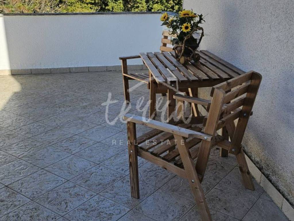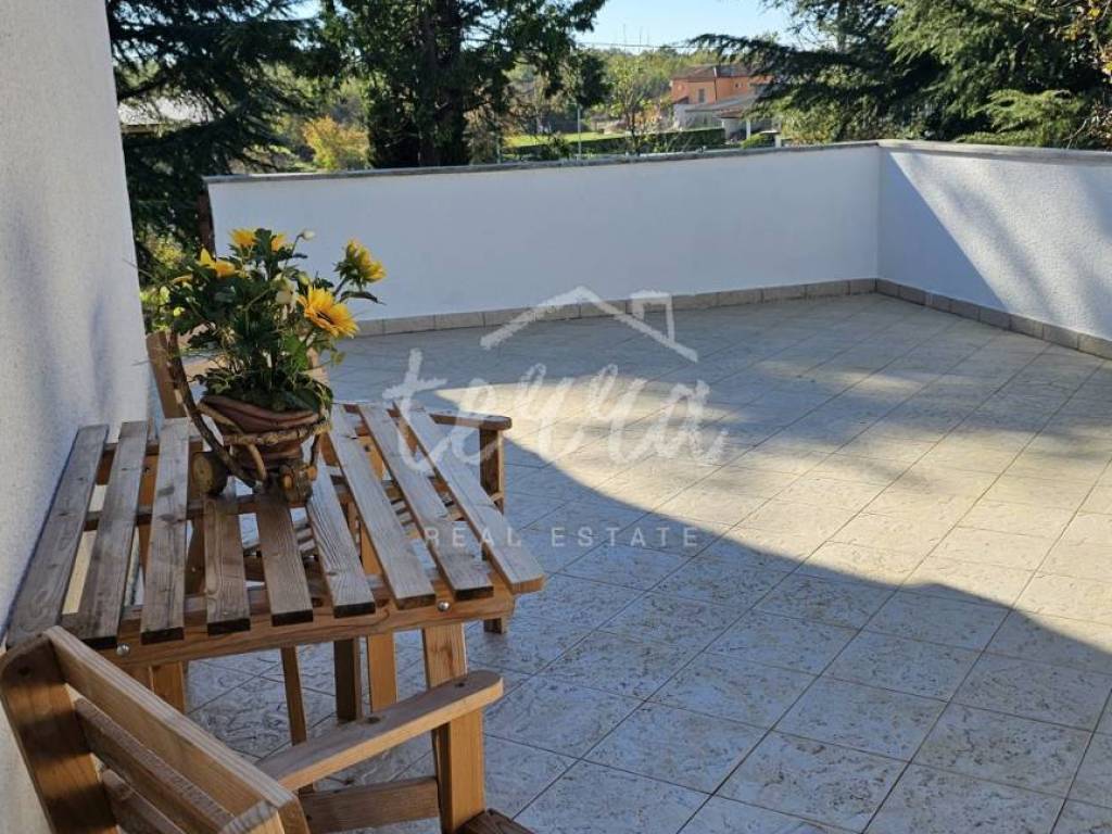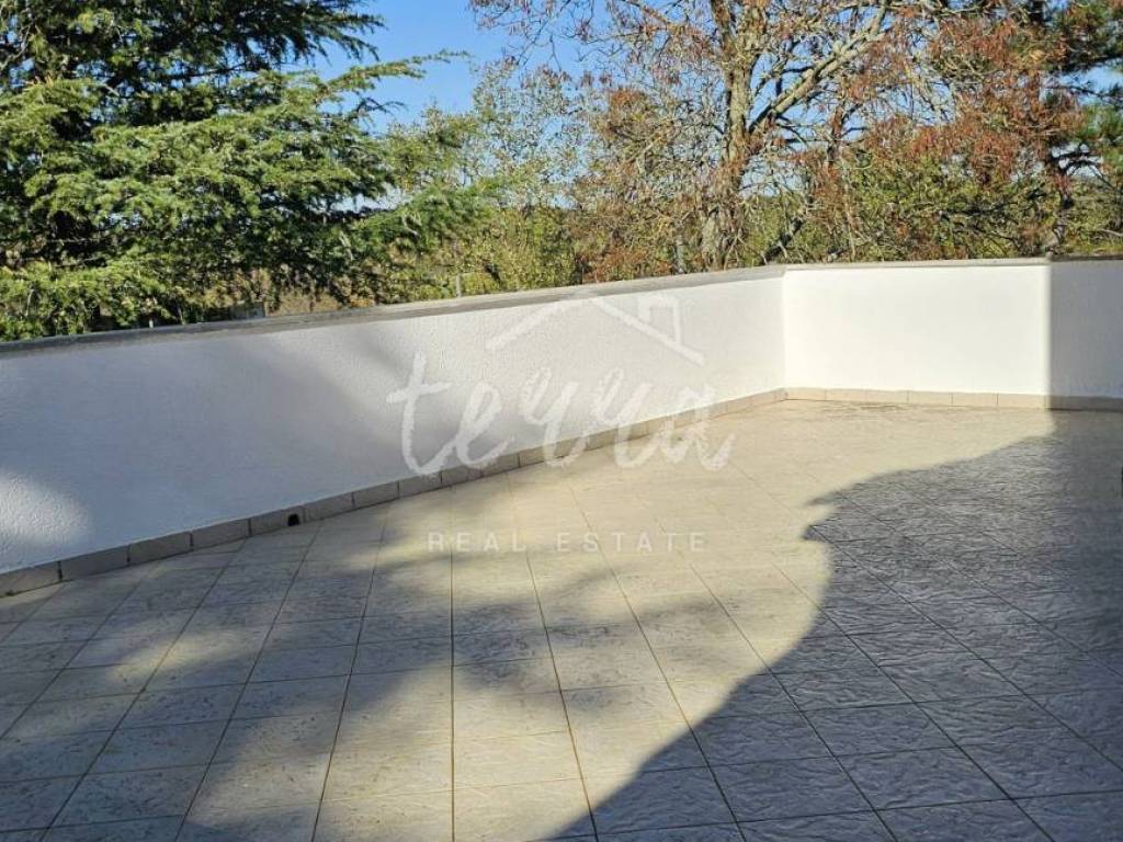Gornji stan ima izlaz na balkon iz kuhinje i dnevnog boravke te iz master spavaće sobe i veliku terasu na ulazu.
