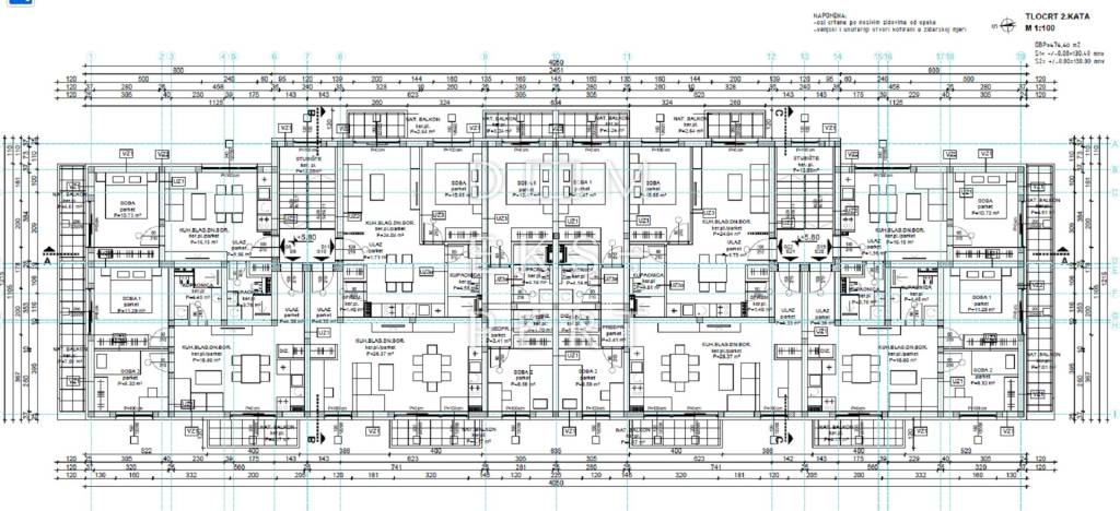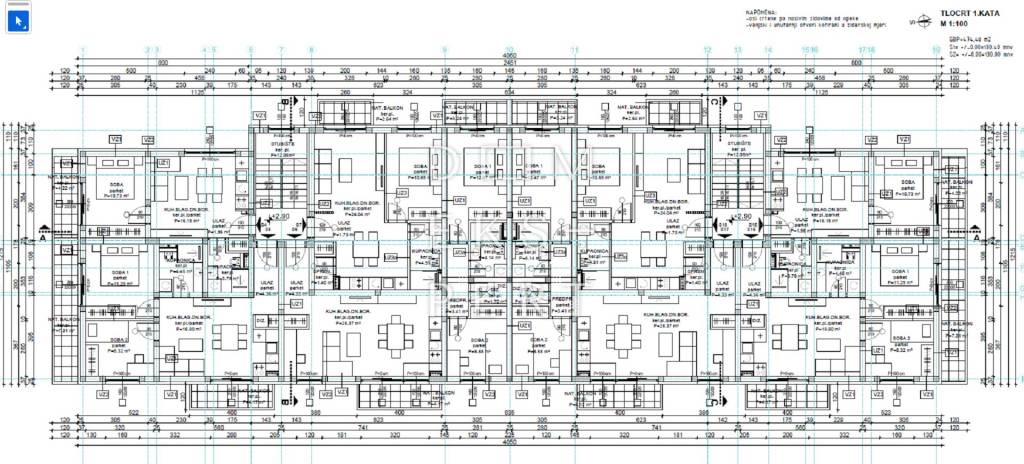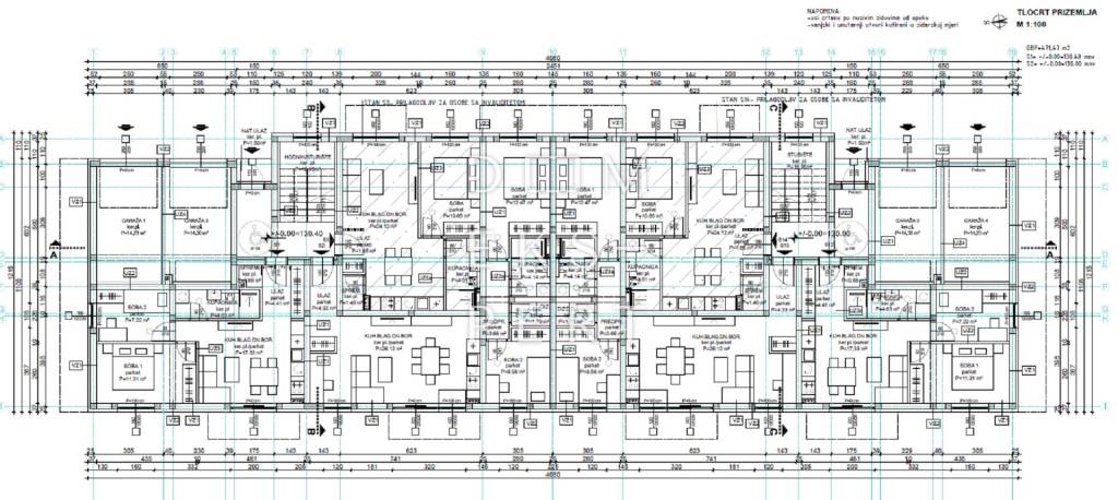 -PRIZEMLJA (sa 6 stambenih jedinica i 4 garaže) površine 474,42 m²