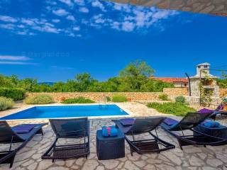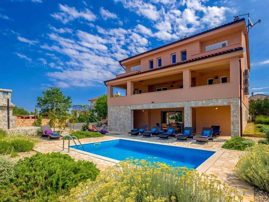 Krk, okolica, samostojeća kuća s 3 apartmana, bazenom, garažom, igraonicom, vinotekom