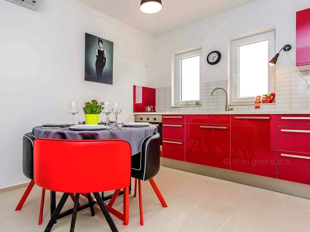 Kuća avangardnog izgleda i kvalitete sastoji se od 3 etaže. Nekretnina zauzima ukupnu površinu od 433 m2. U navedenim gabaritima su sadržani dnevni boravak (3) i kuhinja (3), 7 sp.s., 5 kup., 2 ter., 2 lođe, 2 ostave, 1 spremište, garaža i podrum.