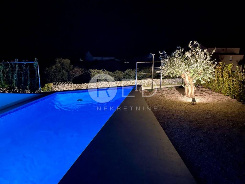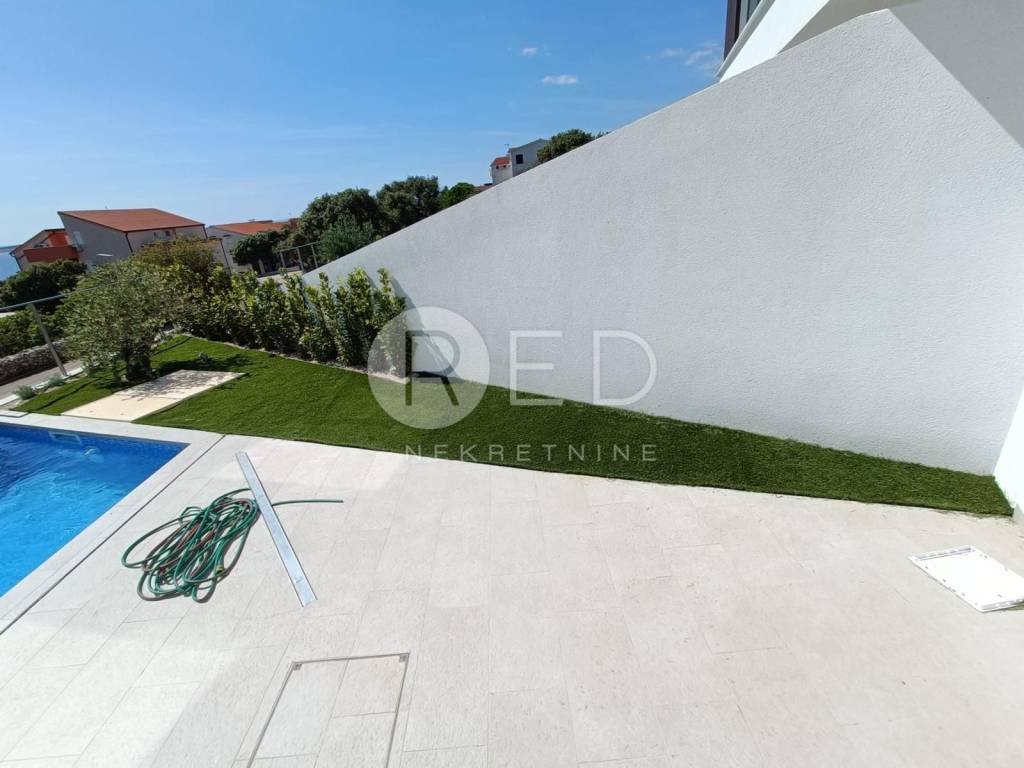Stan je vrhunski opremljen: podno grijanje i svaka soba ima svoj klima uređaj. U dnevnom boravku nalazi se otvoreni kamin sa staklom. Stan ima odvojeni ulaz, 2 parkirna mjesta, i cca 130 m2 vlastite okućnice.