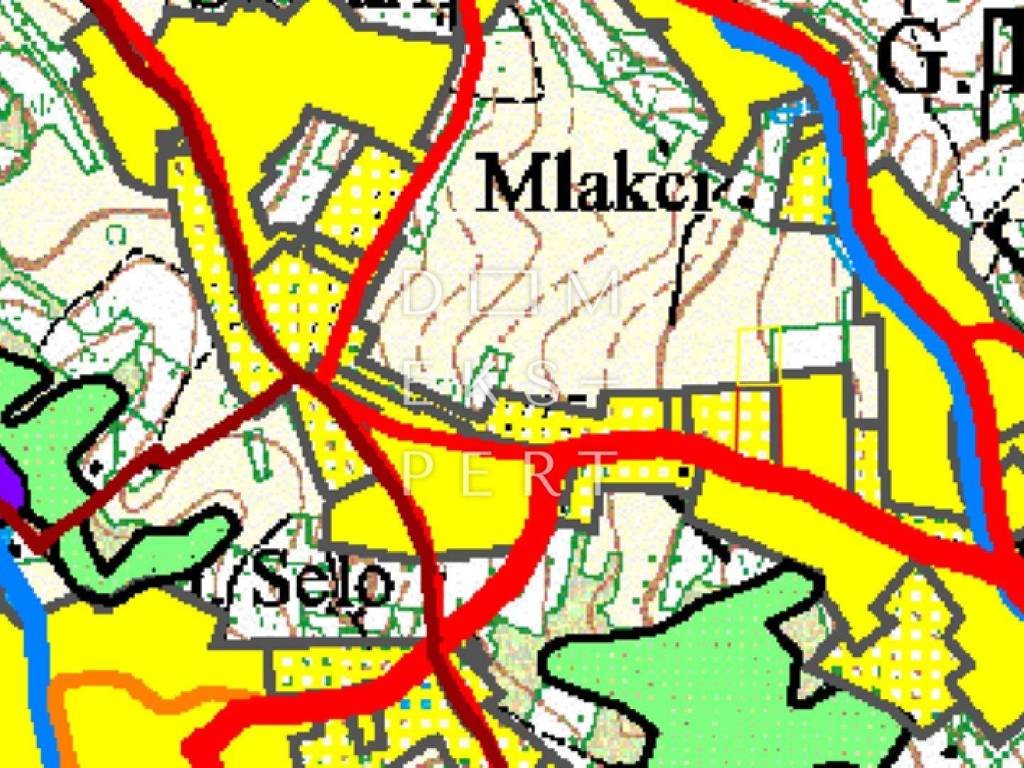 Parcela uz pristupnu cestu je u građevinskoj zoni, dok je parcela iza nje poljoprivredna.