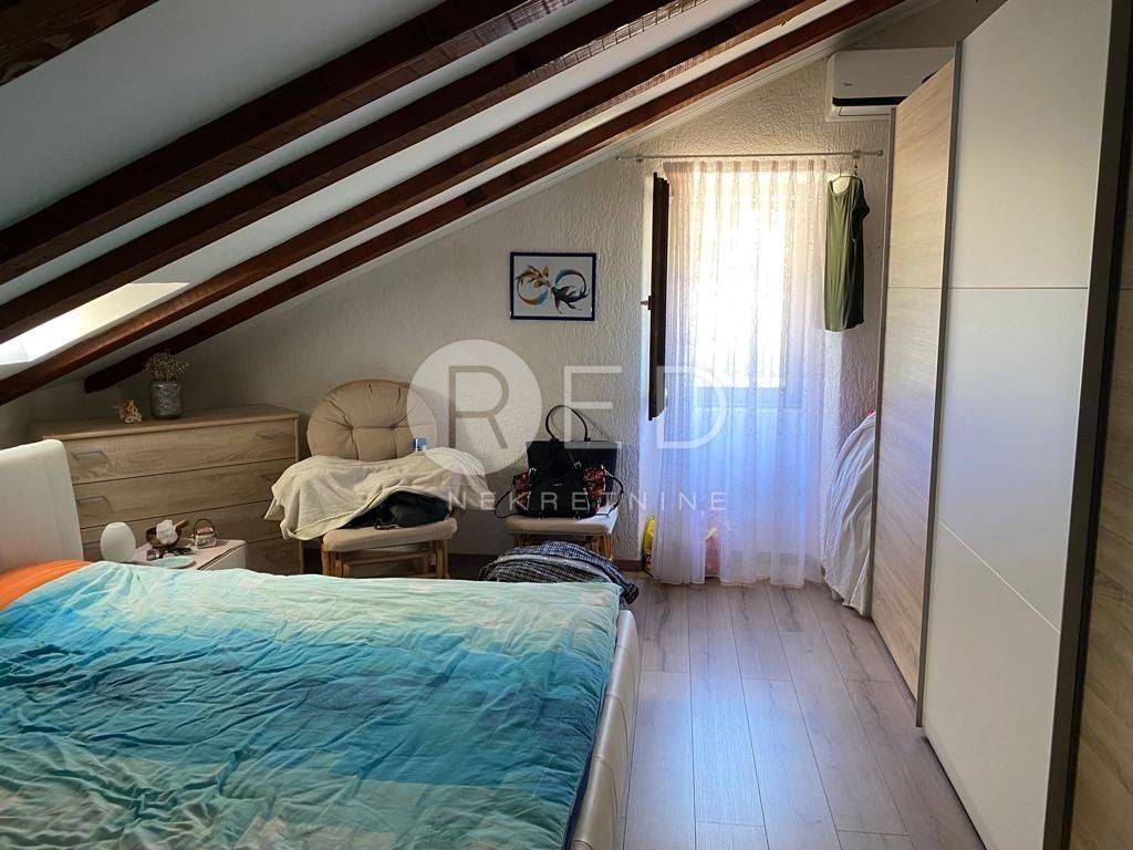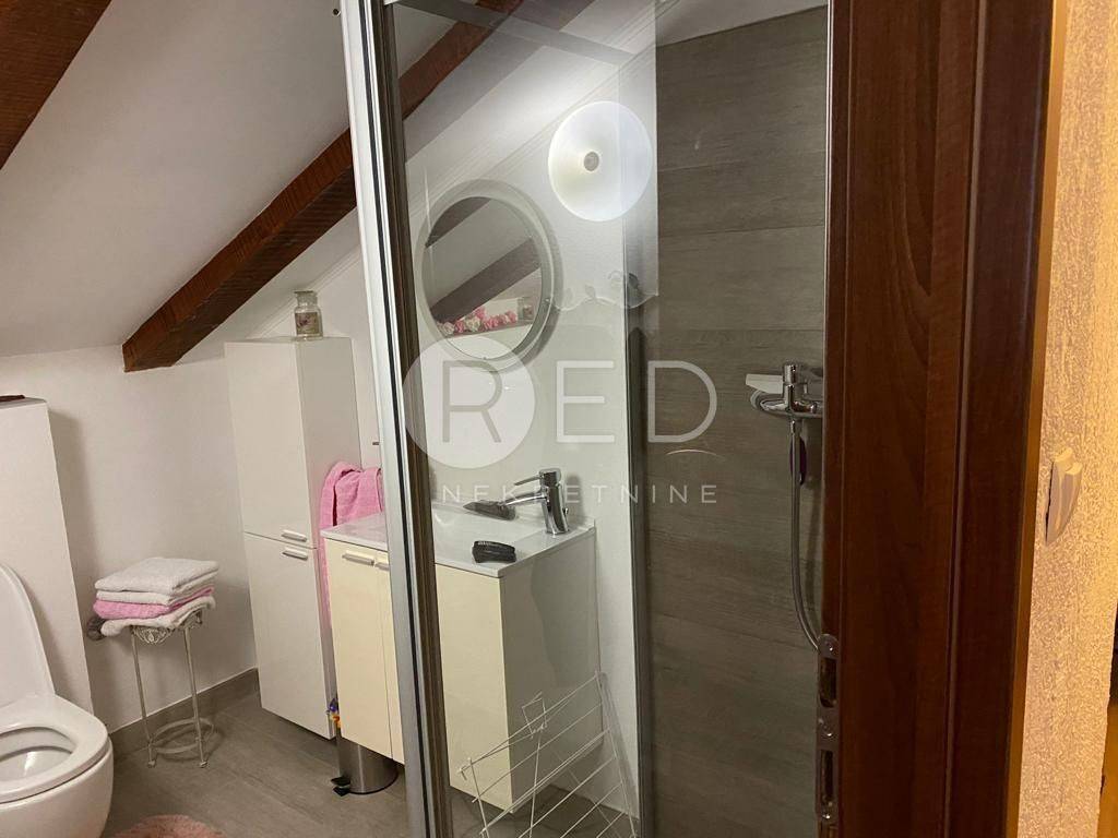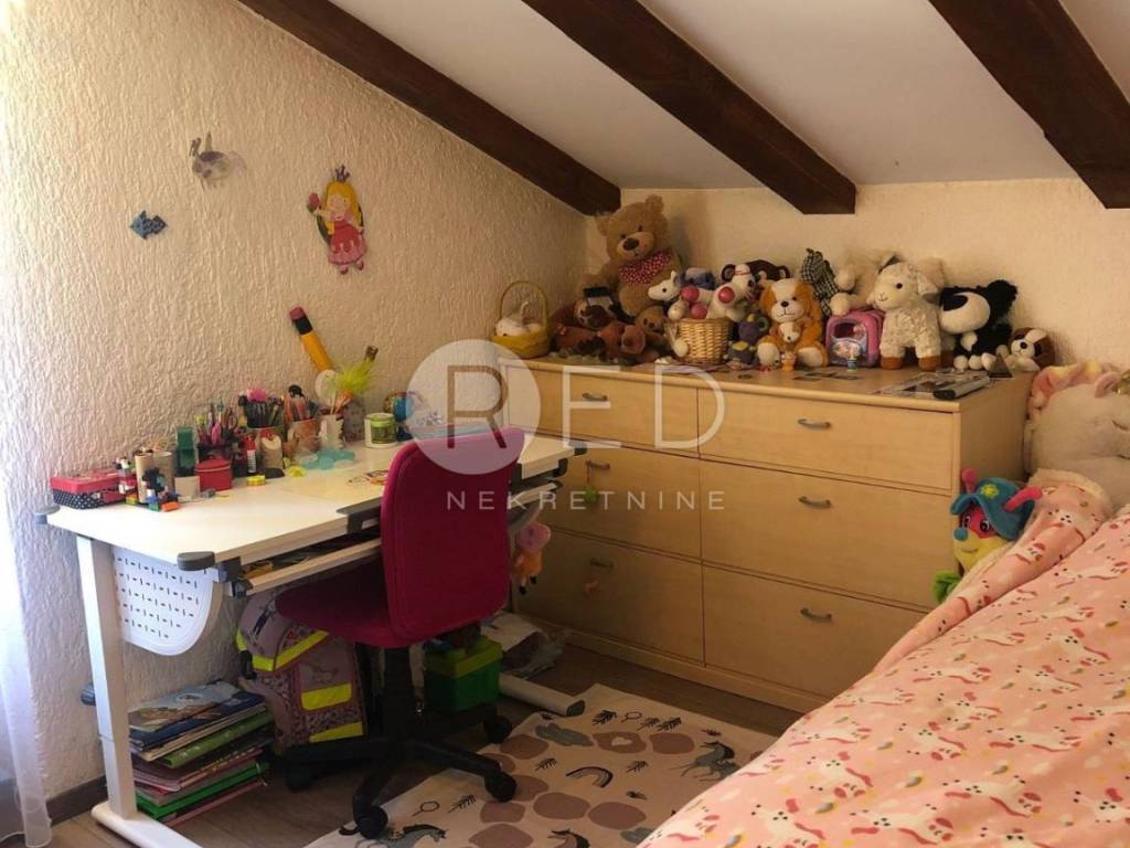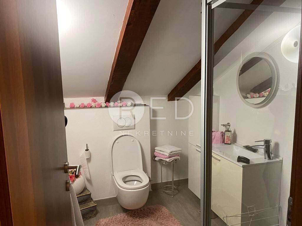 Na katu se nalazi drugi stan koji se sastoji od kuhinje i blagovaonice s izlazom na terasu, dnevnog boravka s balkonom s pogledom na zelenilo, grad i zalazak sunca. Sastoji se i od ostave u kojoj se nalazi bojler te perilica veša, prostrane kupaonice s velikom kutnom kadom i stubišta koje vodi prema potkrovlju u kojem se nalazi radni kutak, kupaonica s tuš kadom, jedna manja i jedna veća spavaća soba.
