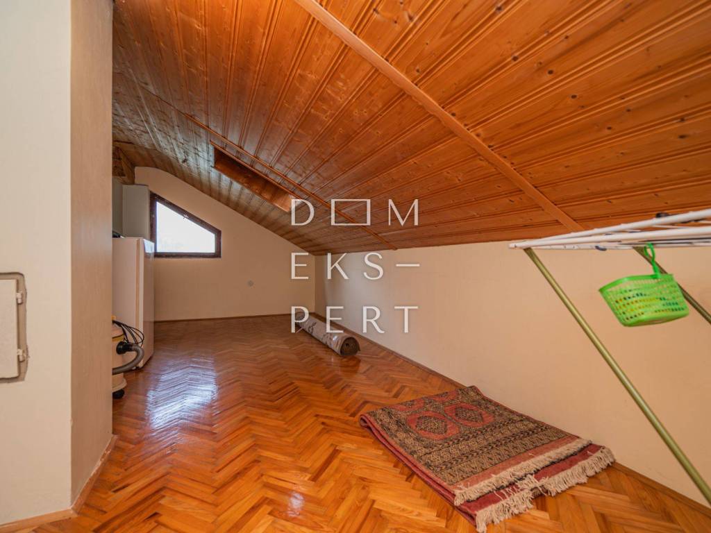 Na podovima u spavaćim sobama je laminat, u kuhinji, hodniku i kupaonicama su keramičke pločice a u ostatku kuće parket.