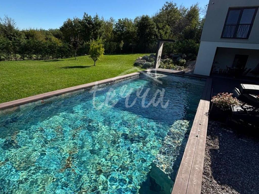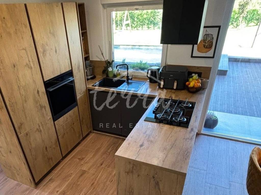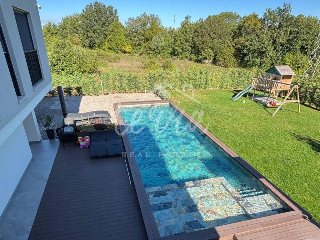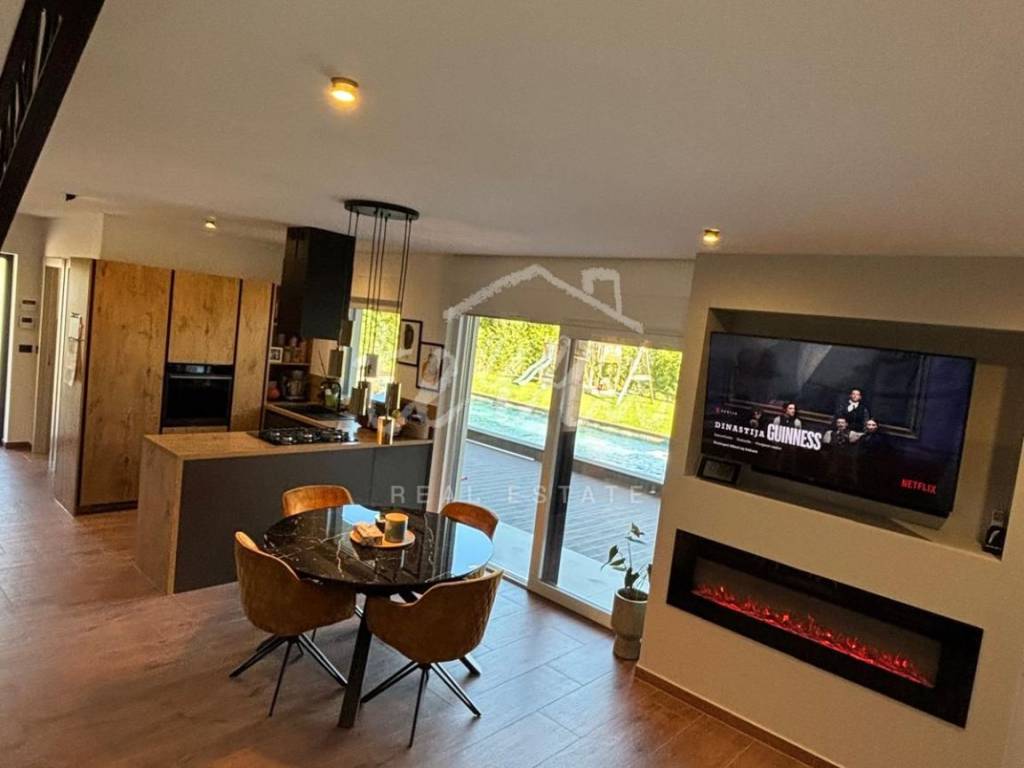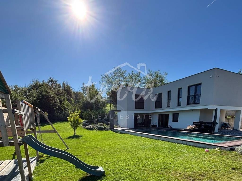 Prodaje se ova prekrasna moderna Vila sa bazenom i prostranim okolišem,LABIN okolica. Vila je kompletno opremljena te vrhunski uređena. Ispred vile prostran parking te dizajnerski osvijetljen ulaz vodi nas u open space dnevni boravak,kuhinju i blaovaonu. Velike staklene stijene pružaju pogled na elegantnu terasu sa sunčalištem i bazenom te na uređen prostran travnjak i zelenilo koji okružuju ovu Vilu. Uz terasu se nalazi vanjski tuš,natkrivena ljetna kuhinja,spremište i wc. Na prvoj se etaži nalaze tri komforne i prekrasno osvijetljene spavaće sobe svaka sa svojom kupaonom. Pri izgradnji se vodilo računa o vrhunskoj kvaliteti izgradnje i opremanja što se vidi na svakom koraku. Vila je opremljena sustavom podnog grijanja i kompletno klimatizirana. Nalazi se u mirnom okruženju,svega par minuta vožnje od grada Labin. Ova je Vila savršena investicija kako u turizam tako i u miran obiteljski život. Vlasništvo 1/1