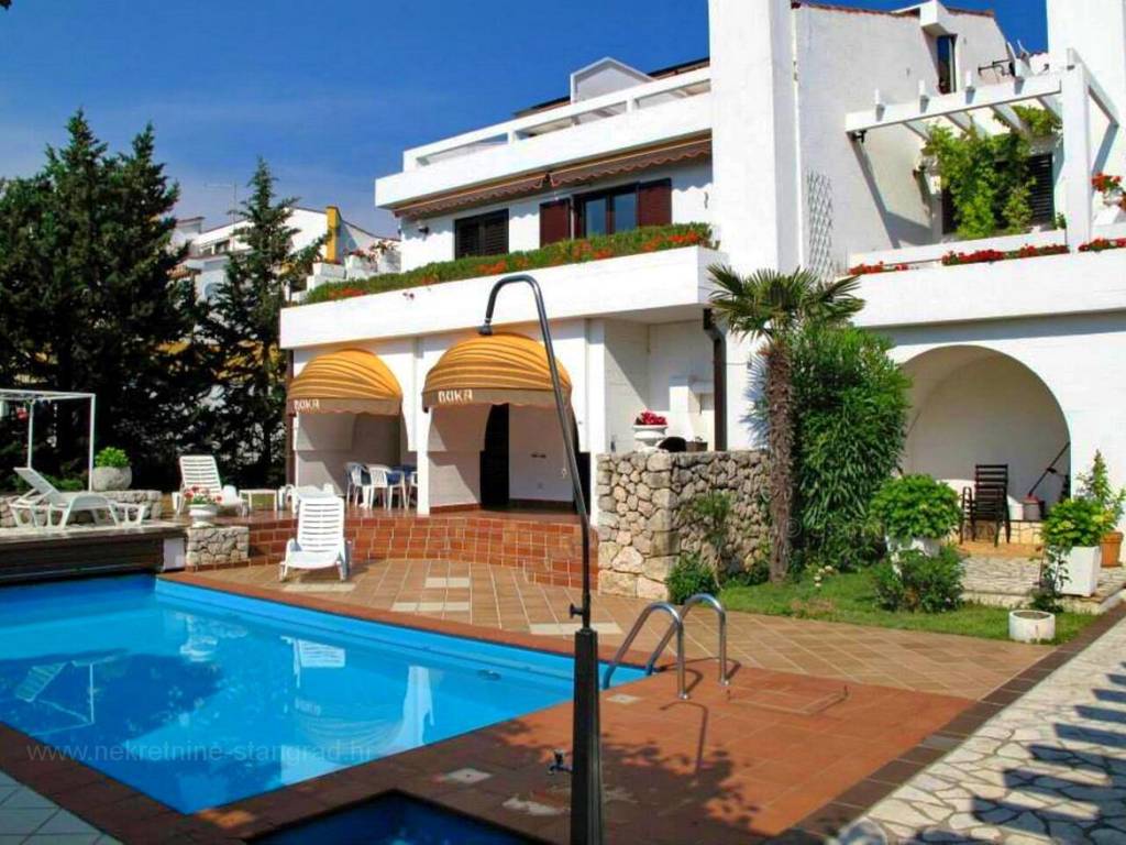 U ponudi agencije Stan Grad Immobilien nalazi se lijepa kuća s bazenom u regiji Otok Krk. Ova iznimna kuća nalazi se na izvanrednoj lokaciji blizu centra mjesta Punat na samo 50m od mora. Idealna za odmor i relaksaciju. Objekt ukupne stambene površine oko 450 m2, s ukupno 8 stambenih jedinica i okućnice 1300 m2, ima prizemlje i dvije etaže. Kući pripada podrum, bazen, sauna, prekrasne terase, ispred i iza kuće, boćalište i kamin. Na navedenoj površini se nalaze 4 dnevna boravaka, 8 kuhinja, 4 blagovaone, 10 sp.s., 8 kup.,1 loggia i 4 balkona. Nekretnina je potpuno opremljena i namještena i kao takva se prodaje. U okviru vlasništva nekretnine, novi vlasnik stana raspolagati će s 8 parkirnih mjesta. Uz sve navedeno, nekretnina ima fantastičan otvoren pogled na more. Ova nekretnina je u vlasništvu fizičke osobe. Prodavatelj garantira uredne dokumente i promptan prijenos vlasništva apartmana na kupca. Agenti ureda Stan Grad Immobilien će vam pomoći pri uknjižbi i svim ostalim administrativnim poslovima.
