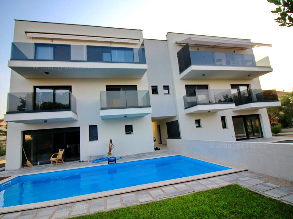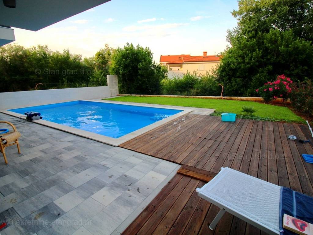 Uz sve navedeno, nekretnina ima prekrasan otvoreni pogled na more. Bitno je istaknuti i da apartmanu pripada prelijepo uređena okućnica s bazenom.