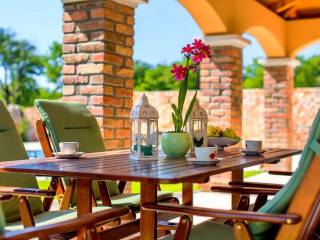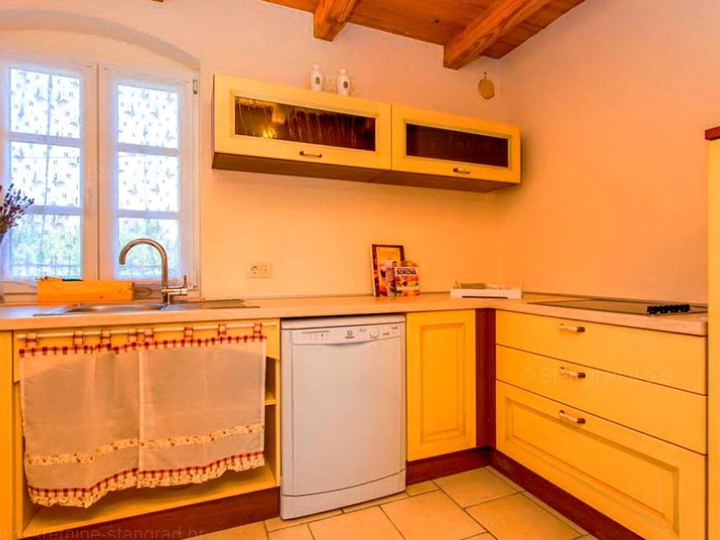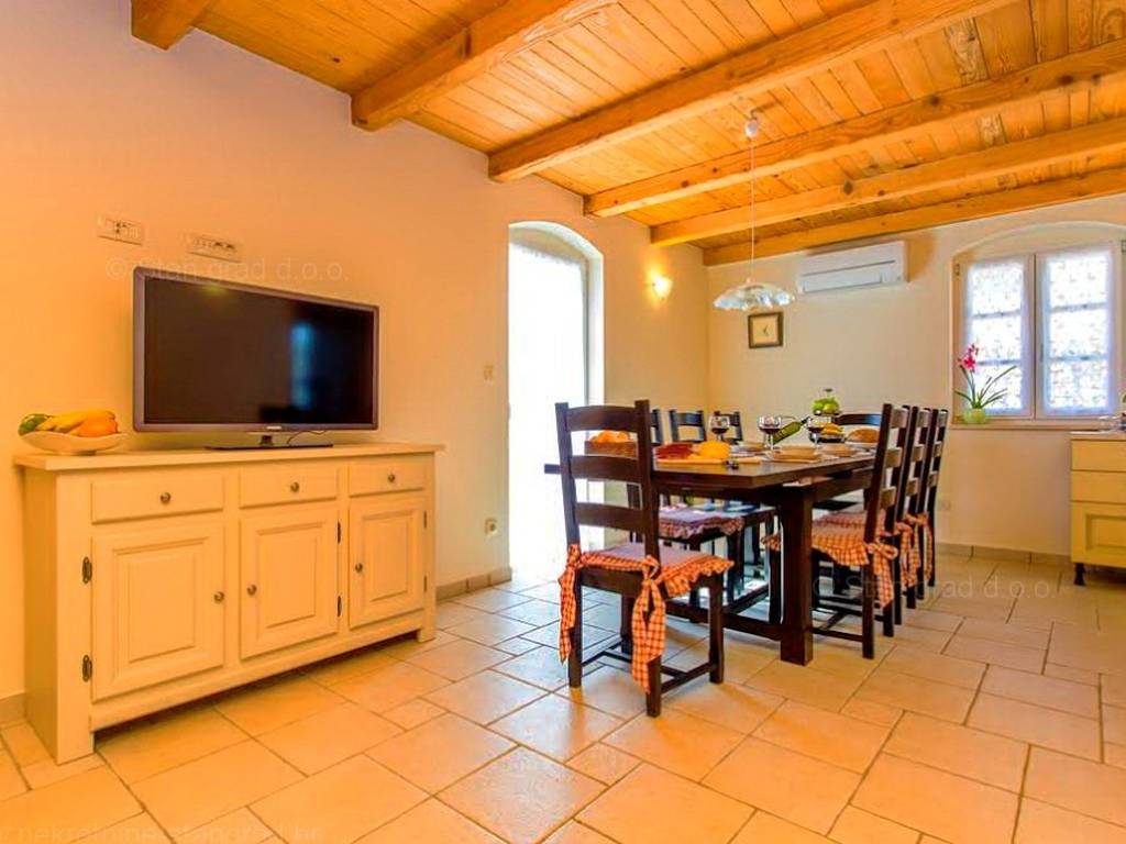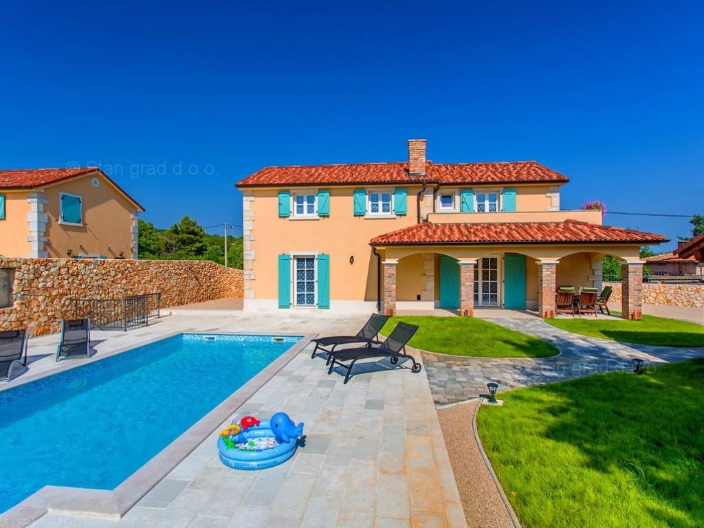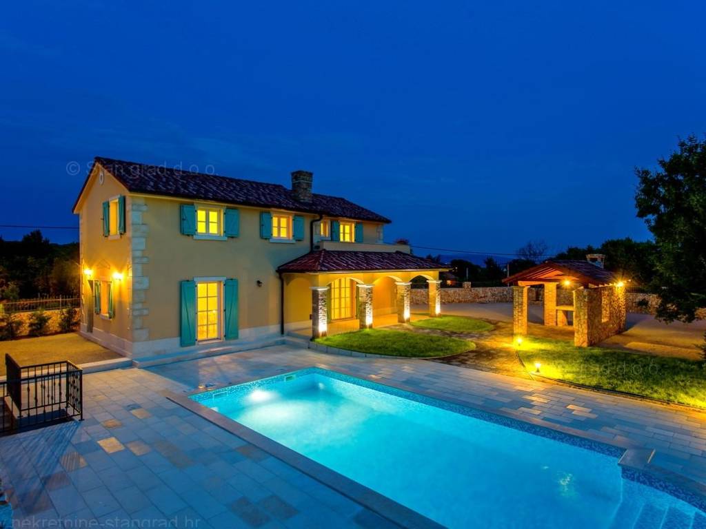 Iz dobre ponude nekretnina u agenciji Stan Grad Immobilien izdvaja se vrlo lijepa rustikalna kuća s bazenom i okućnicom u regiji Otok Krk. Ova zanimljiva primorska kuća je na kvalitetnoj lokaciji okolice mjesta Dobrinj u unutrašnjosti otoka i blizu svih potrebnih sadržaja. Vrlo lijepa kamena vila je izvedena na 2 etaže. Kuća se proteže na ukupnoj površini 140 m2.U toj su površini obuhvaćeni u prizemlju ulazni dio, dnevni boravak i kuhinja s blagovaonicom ,izba, wc i izlaz na veliku natkrivenu terasu. Na katu su 3 sp.sobe od kojih jedna ima izlaz na terasu i 1 kupaonica. Prodaje se potpuno opremljena i namještena. Visoka kvaliteta gradnje i opreme, klimatizacija, dizajnerski namještaj, priprema za centralno grijanje, ljetna kuhinja, prostrana okućnica za komotno parkiranje vozila . Osim navedenog, treba napomenuti da kuća ima lijep pogled na ovo primorsko mjesto. Ova nekretnina je u vlasništvu fizičke osobe. Prodavatelj kuće jamči urednu vlasničku dokumentaciju te brz prijenos vlasništva nekretnine. Agenti posredničkog ureda Stan Grad Immobilien pomoći će vam u kupoprodaji i prijenosu vlasništva kuće.