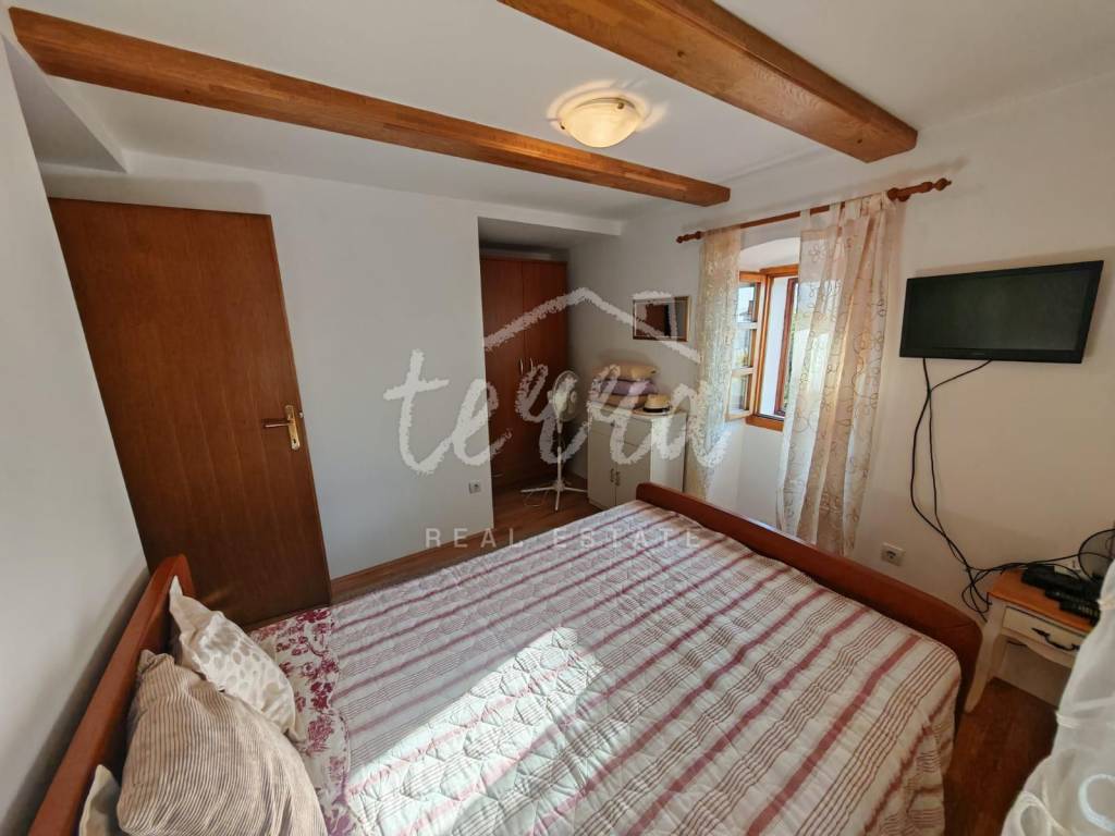 Nekretnina je građena prije 1968. godine i odiše šarmom tradicionalne primorske arhitekture – autentični kameni zidovi, drveni detalji i skladno uređeni interijer stvaraju topao i ugodan ambijent. Kuća se prodaje potpuno namještena.