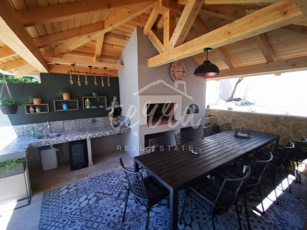Na idiličnoj lokaciji na kraju zaseoka prodaje se samostojeća kuća unutar uređene i ograđene okućnice. Prilaz kući je uz potok i šetnicu, što nekretnini daje posebnu čar. Kuća je u potpunosti adaptirana i novo namještena te kategorizirana za turizam. Prizemlje je koncipirano kao veliki dnevni prostor s kaminom, na koji se nadovezuje kuhinja s blagovaonicom (jedan veliki otvoreni prostor), spavaća soba s garderobom i kupaonicom te zasebni WC s praonicom rublja. Iz prizemlja se izlazi na terasu, prostor bazena i sjenicu za druženje. Na katu su tri spavaće sobe, svaka s vlastitom kupaonicom, dok jedna soba ima galeriju i veliku terasu. Sa stražnje strane kuće nalazi se objekt u kojem se dovršava wellness prostor. Parking za više automobila unutar okućnice. Sve sobe su klimatizirane, a cijela kuća ima podno grijanje. Kuća je novo namještena s pomno biranim detaljima namještaja. Nekretnina je rijetkost na tržištu.