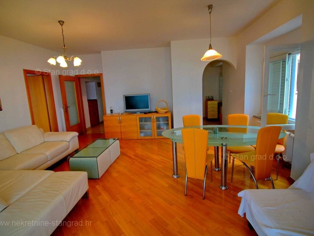 U ponudi naše agencije na super atraktivnom sjevernojadranskom području Otok Krk se prodaje potpuno uređen apartman koji pruža savršen ugođaj provođenja godišnjih i vikend odmora. Ova nekretnina se nalazi na top lokaciji, uklopljena u prostor užeg centra mjesta Malinska u neposrednoj blizini mora, plaže i drugih turističkih sadržaja. Prema vrsti nekretnine, ovo je jednoetažni apartman srednje veličine. U vrlo dobrom i kvalitetnom objektu, apartman je smješten na 1. etaži. Apartman obuhvaća ukupnu površinu od približno 114 m2. Sastoji se od kuhinje, blagovaonice i dnevnog boravka, dvije kupaonice i četiri spavaće sobe. Apartman ima dvije velike terase s otvorenim pogledom na more. Interijer nekretnine je vrlo dobro održavan te kompletno opremljen svim potrebnim tehničkim uređajima i kvalitetnim namještajem. Vlasnik apartmana na raspolaganju će imati jedno parkirno mjesto. Osim ranije navedenih karakteristika, apartman ima odličan položaj i usmjerenost koji njegovim žiteljima osiguravaju prekrasan otvoreni pogled na more. Ovaj apartman je u vlasništvu fizičke osobe i na ime njegovog prijenosa kupac je u obvezi plaćanja poreza na promet nekretnine u visini 3%. Prodavatelj nekretnine jamči urednu građevinsku i vlasničku dokumentaciju te brz prijenos nekretnine na ime kupca. S veseljem ćemo prihvatiti ulogu vašeg partnera u potrazi i sigurnoj akviziciji nekretnine ne Kvarneru. Poklonite li nam svoje povjerenje, agencija Stan Grad Immobilien rado će vam pomoći u prijenosu vlasničkih prava ove nekretnine te računa za njene komunalne priključke i usluge na vaše ime.