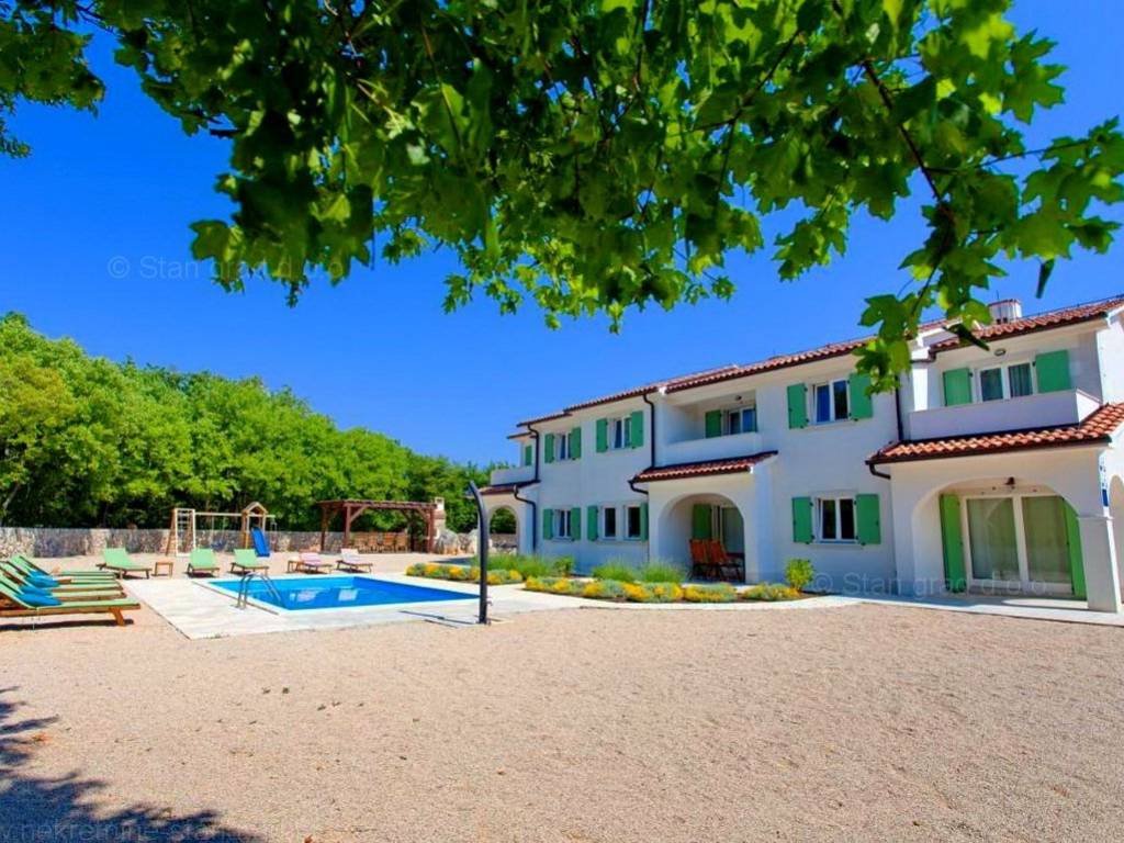 Dobrinj, okolica, samostojeća kuća s 3 stambene jedinice i zajedničkim bazenom, PRODAJA!