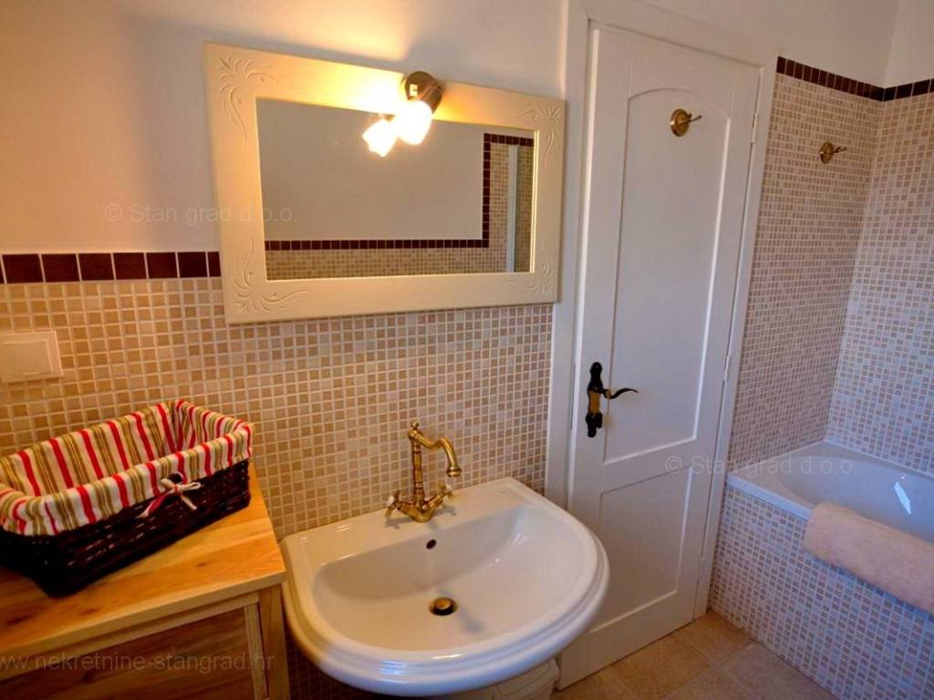 Dodanu vrijednost ovom cijelom objektu daje okućnica oplemenjena bazenom i sunčalištem te sjenicom i grillom. Prostrana okućnica opisane nekretnine uređeno je komotno parkiranje više vozila.