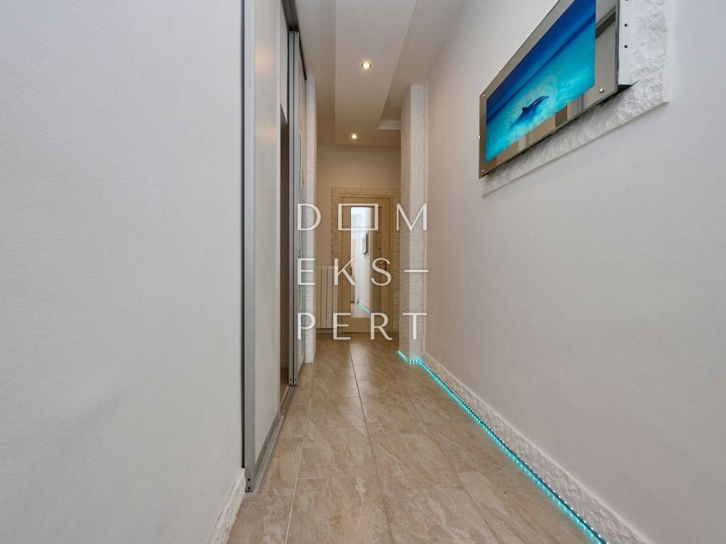 Stan se sastoji od „open space“ dnevnog boravka s kuhinjom, dvije spavaće sobe, kupaonice, hodnika i ostave.