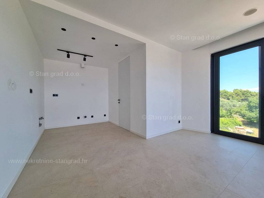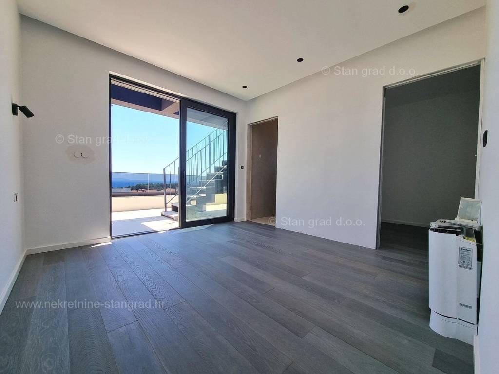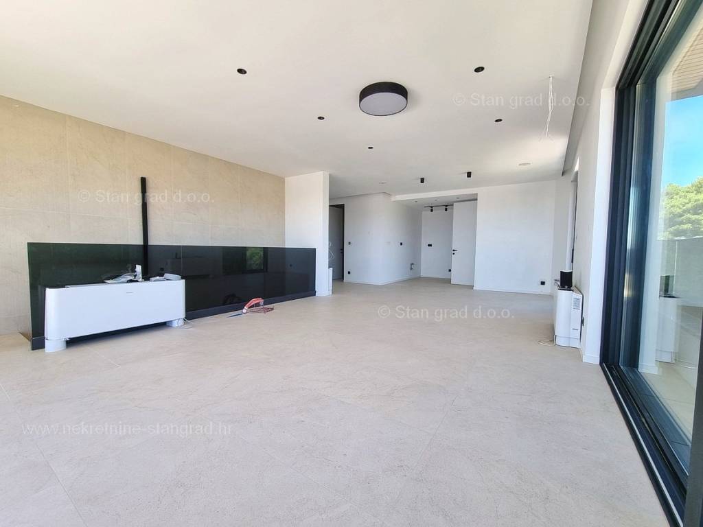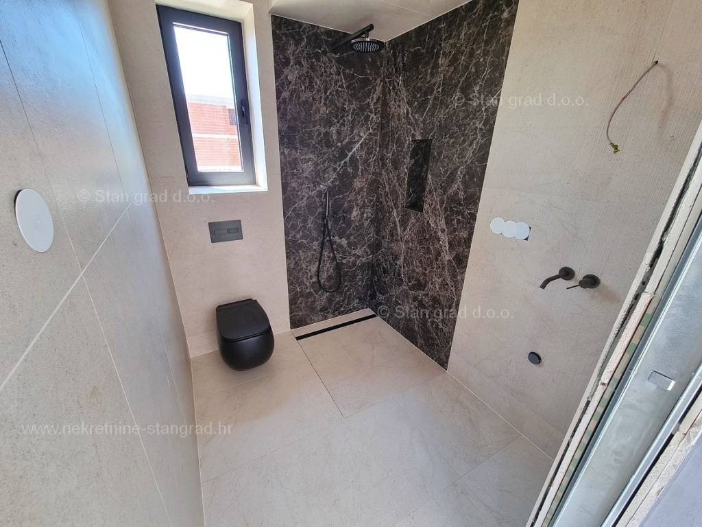 Gledajući vrstu nekretnine, ovo je veliki cjeloetažni apartman pozicioniran na 2. etaži. Apartman obuhvaća ukupnu površinu od približno 160 m2. Stan se sastoji od ulaznog hodnika, prostranog dnevnog boravka sa kuhinjom, blagovaonom, dvije spavaće sobe sa vlastitom kupaonicom, spavaće sobe, kupaonice, hodnika i ostave te balkona od 40 m2. S balkona se stepenicama penje na krovnu terasu od 85 m2 sa bazenom i sunčalištem. Bazen je površine 21 m2. Apartmanu pripada i spremište od 4m2 u podrumu. Vlasnik apartmana na raspolaganju će imati 2 parkirna mjesta.