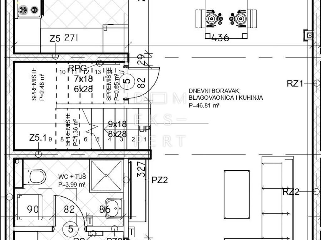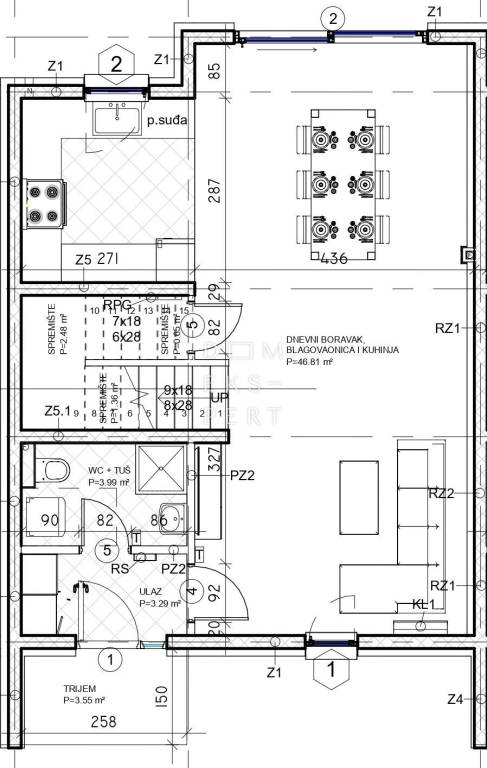 - dnevni boravak s blagovaonicom i kuhinjom (46.81 m²)