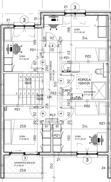 - konstrukcija će biti izrađena od armiranog betona s prezidama od knaufa unutar stanova