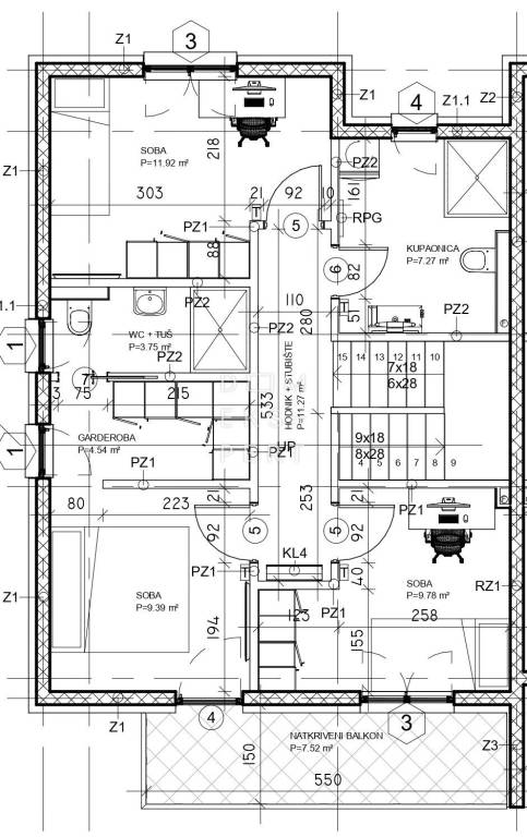 - konstrukcija će biti izrađena od armiranog betona s prezidama od knaufa unutar stanova
