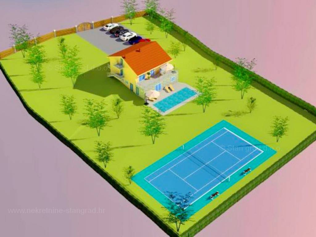 Na prodaji kod agencije Stan Grad Immobilien je vrlo dobra kuća u mediteranskoj regiji Otok Krk, tradicionalno atraktivnom području za turistički boravak na hrvatskom Jadranu. Ova zanimljiva kuća se nalazi u okolici poznatog mjesta Krk, na zelenoj lokaciji bez gradske buke. Prema vrsti objekta, građevina se može kategorizirati kao samostojeća kuća katnica s 3 zasebna stana. Kuća zauzima prostor ukupne površine 350 m2. Sastoji se od 6 spavaćih soba, 3 kupaonice, 1 wc, 3 dnevna boravka sa kuhinjom. U potkrovlju još dodatna prostorija od 30 m2, teretana, sauna za 12 ljudi, vinski podrum. Dodanu vrijednost ovom cijelom objektu daje okućnica oplemenjena bazenom i sunčalištem te sjenicom. Privatni teniski teren je u planu sa ljetnom kuhinjom i roštiljem s drvenom pergolom kao nadstrešnicom. Na spomenutoj okućnici nekretnine može se komforno parkirati više automobila na uređenom prostoru. Vlasnik nekretnine garantira za urednost relevantnih vlasničkih dokumenata i mogućnost brzog transfera vlasništva kuće na kupca. Srdačno vas očekujemo na adresi ureda na otoku Krku. Kupcu ove nekretnine će prodajni tim agencije Stan Grad Immobilien rado pomoći kod prijenosa vlasništva nekretnine u zemljišnu knjigu te prijenosa računa za struju, vodu i odvoz smeća na svoje ime. Nekretnina je trenutno u fazi gradnje te se prodaje isključivo po sistemu ključ u ruke. Idealna za investiciju.