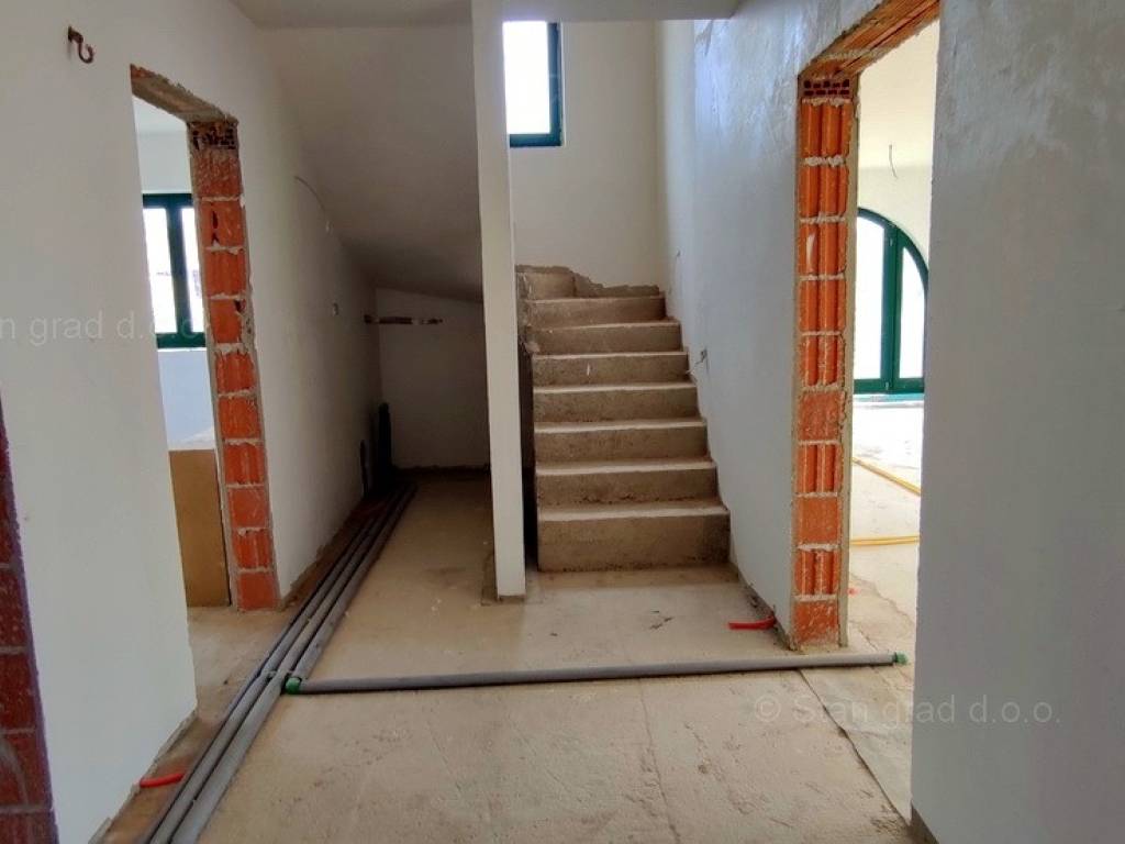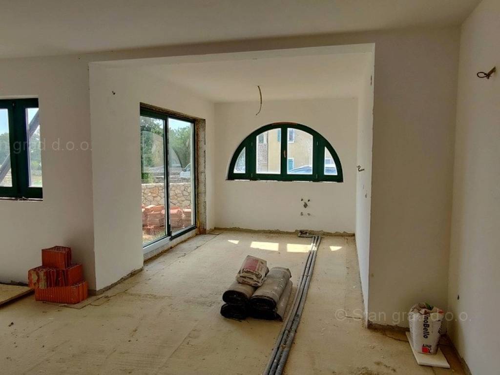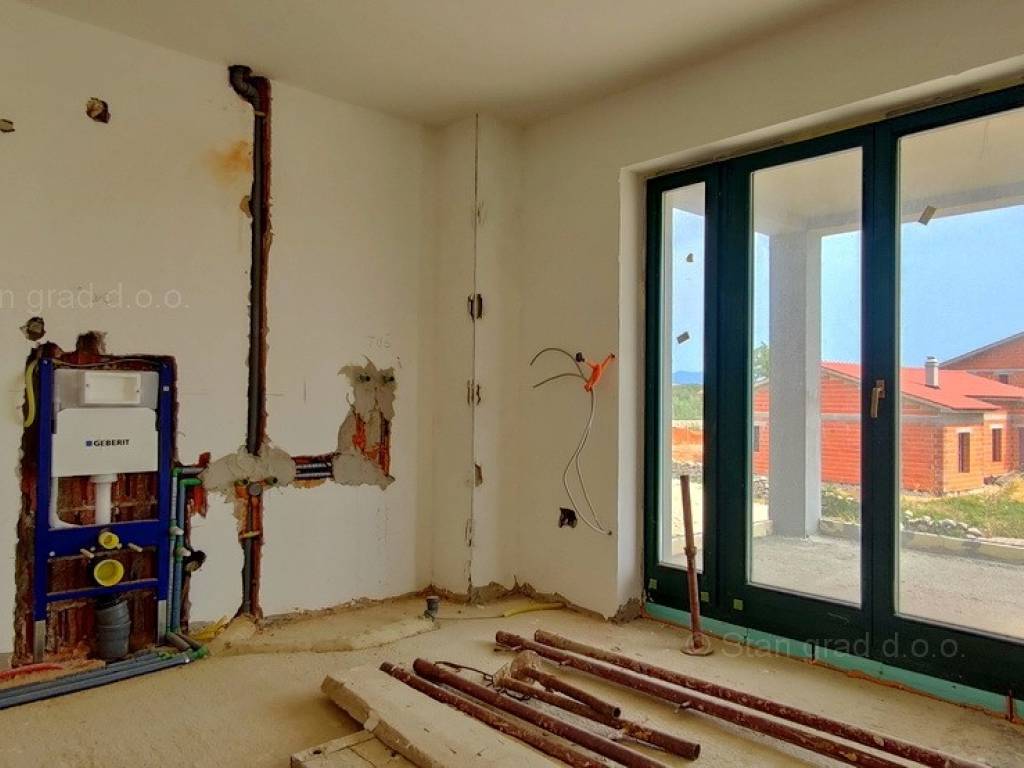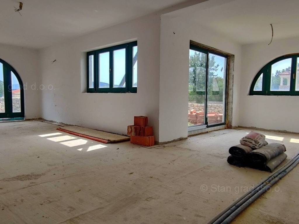 Na prodaji kod agencije Stan Grad Immobilien je vrlo dobra kuća u mediteranskoj regiji Otok Krk, tradicionalno atraktivnom području za turistički boravak na hrvatskom Jadranu. Navedena kuća je smještena u blizini mjesta Krk, na mirnoj poziciji malo podalje od gradske buke. Prema vrsti objekta, građevina se može kategorizirati kao samostojeća kuća katnica s bazenom. Kuća je predviđena za stanovanje jedne obitelji. Kuća zauzima prostor ukupne površine 135 m2. Ta površina sadržava dnevni boravak i kuhinja, 3 spavaće sobe, 2 kupaonice, 1 wc-a, 2 terase. Dodanu vrijednost ovom cijelom objektu daje okućnica oplemenjena bazenom i sunčalištem te sjenicom. Na spomenutoj okućnici nekretnine može se komforno parkirati više automobila na uređenom prostoru. Ova je nekretnina vlasništvo fizičke osobe pa je kupac prilikom prijepisa njenog vlasništva na svoje ime u obvezi plaćanja poreza na promet u visini 3%. Vlasnik garantira kompletnu i urednu tehničko-vlasničku dokumentaciju te jednostavan prijenos nekretnine na kupca. Javite nam se ili nas posjetite na otoku Krku, rado ćemo vas uslužiti i odgovoriti na vaša pitanja. Kupcu ove nekretnine će prodajni tim agencije Stan Grad Immobilien rado pomoći kod prijenosa vlasništva nekretnine u zemljišnu knjigu te prijenosa računa za struju, vodu i odvoz smeća na svoje ime. Nekretnina se prodaje po sistemu "ključ u ruke", a planirani završetak radova je kraj 2022g.