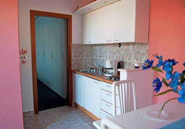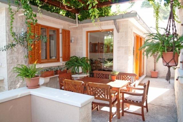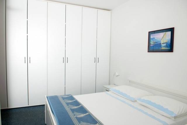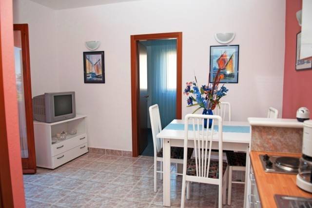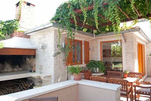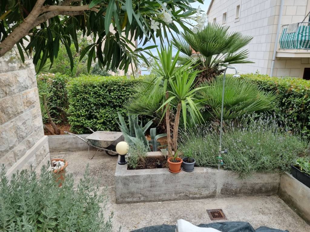Stan 38,11 m2 se nalazi u visokom prizemlju i sastoji se od dvije spavaće sobe, kupaonice s WC-om, kuhinje i blagovaonice te dnevnog boravka koji ima izlaz na nenatkrivenu terasu od 6,95 m2 s pogledom na more. Stanu pripada i ljetna kuhinja koja se nalazi u dvorištu od 24,03 m2, ostava u prizemlju 3,78 m2 , dva parkirna mjesta 33,94 m2 te dvorište od 128,15 m2.