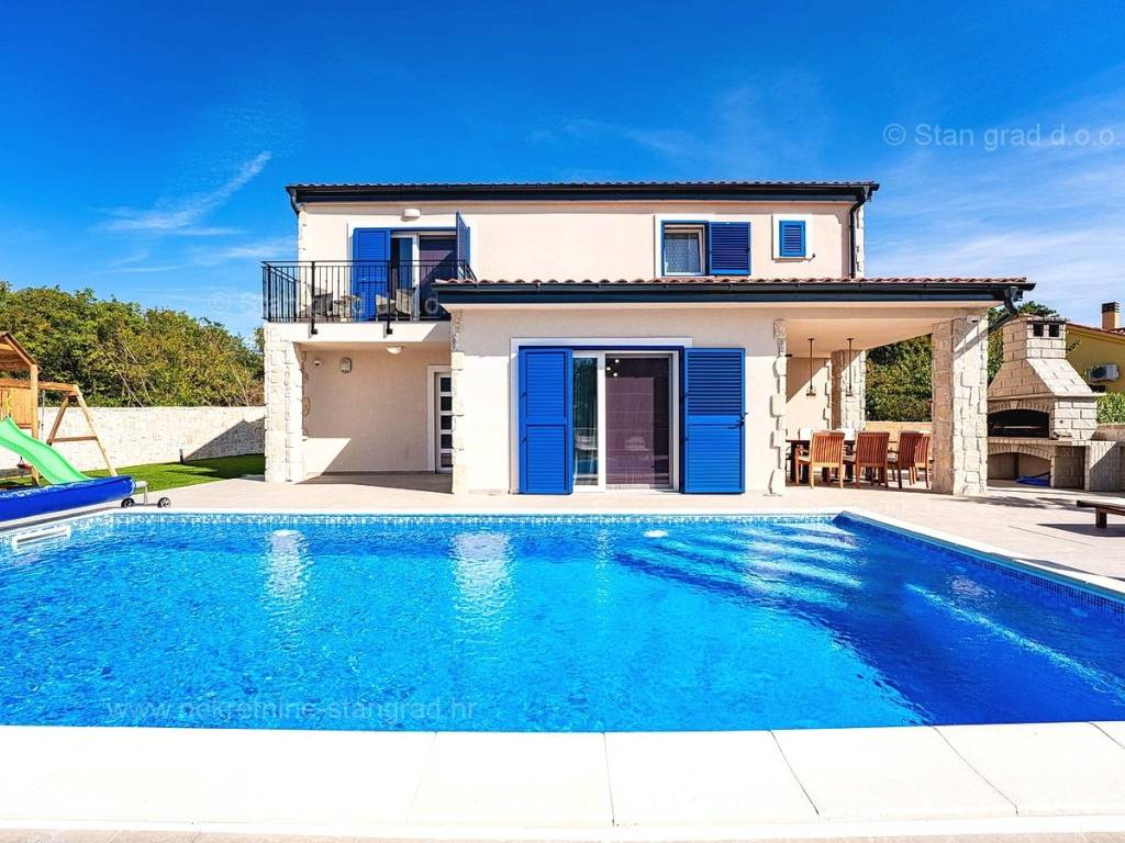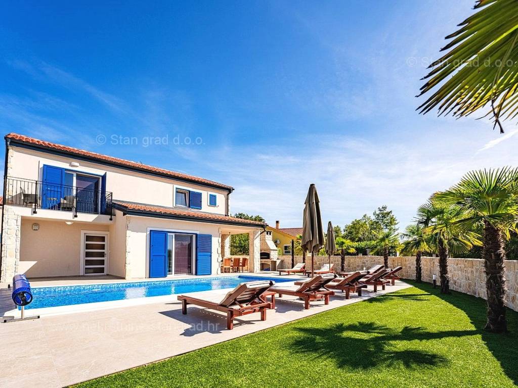 Iz dobre ponude nekretnina u agenciji Stan Grad Immobilien izdvaja se vrlo lijepa moderna samostojeća kuća s bazenom i okućnicom u regiji Otok Krk. Ova zanimljiva primorska kuća je na kvalitetnoj lokaciji okolice mjesta Dobrinj u unutrašnjosti otoka i blizu svih potrebnih sadržaja.