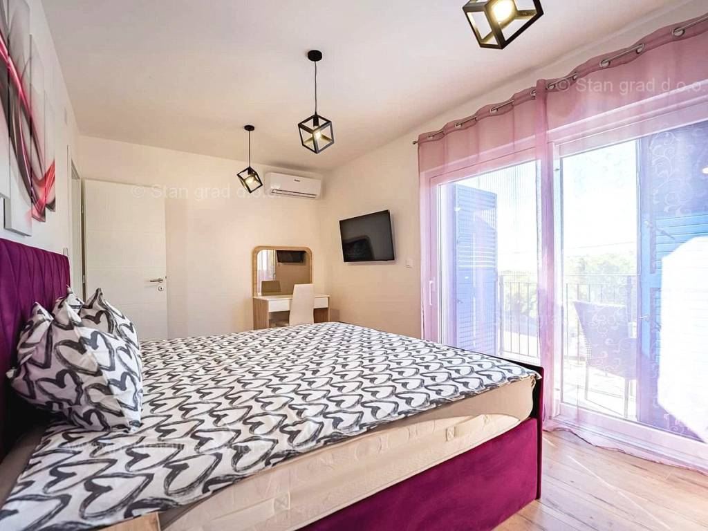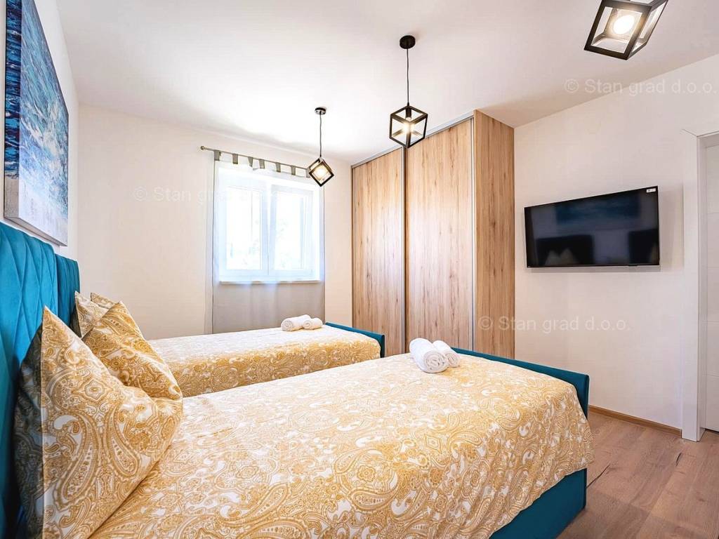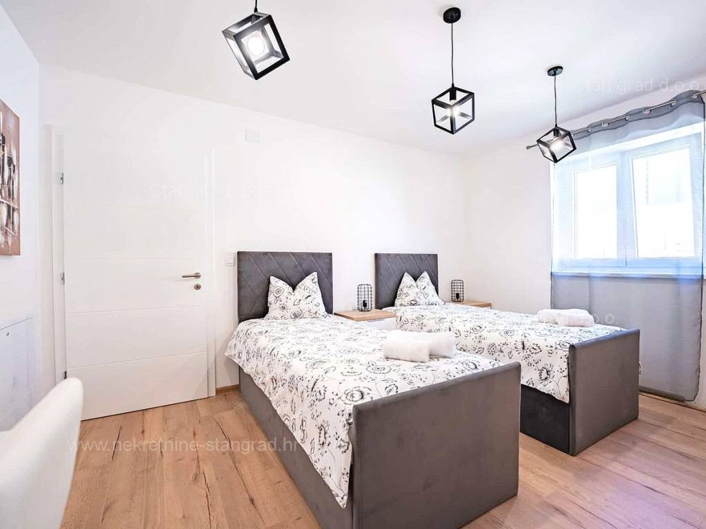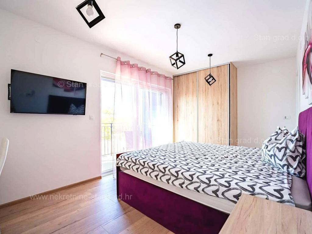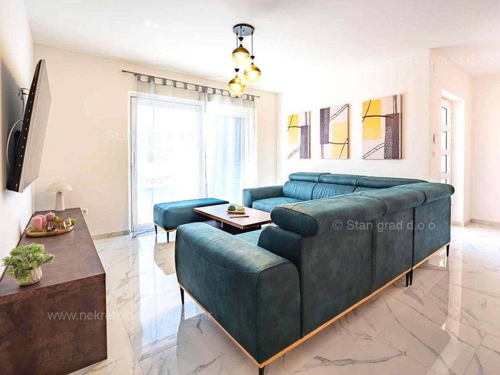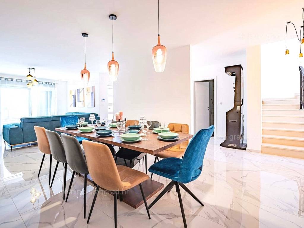 Vrlo lijepa vila je izvedena na 2 etaže. Kuća se proteže na ukupnoj površini 185 m2. U prizemlju se nalazi ulazni hodnik, blagovaona, kuhinja, dnevni boravak, wc, spavaća soba sa vlastitom kupaonicom te garderoba. Unutarnje stepenište vodi na 1. kat gdje se nalaze 3 sp. sobe, svaka sa vlastitom kupaonicom. Jedna soba ima izlaz na terasu sa koje se pruža prekrasan pogled na uređenu okolicu i prirodni krajolik. Iz dnevnog se boravka pruža izlaz na terasu, sunčalište i bazen. Visoka kvaliteta gradnje i opreme, klimatizacija u svakoj sobi, podno grijanje na dizalicu topline, troslojna stolarija sa komarnicima i prostrana okućnica za komotno parkiranje vozila.