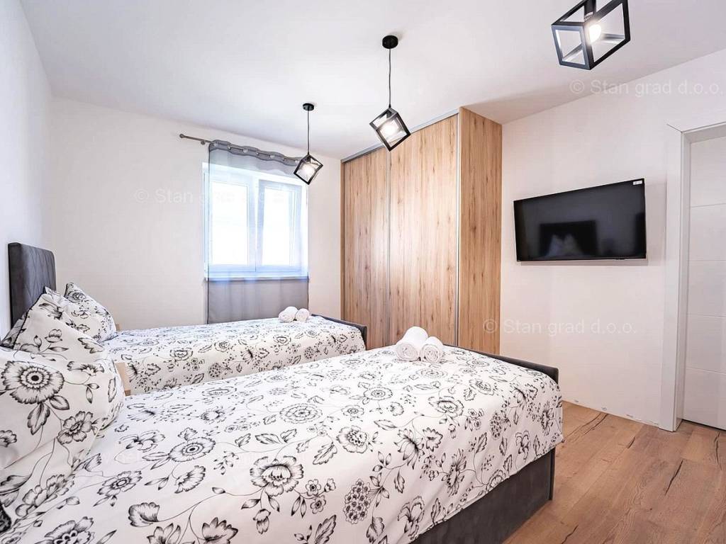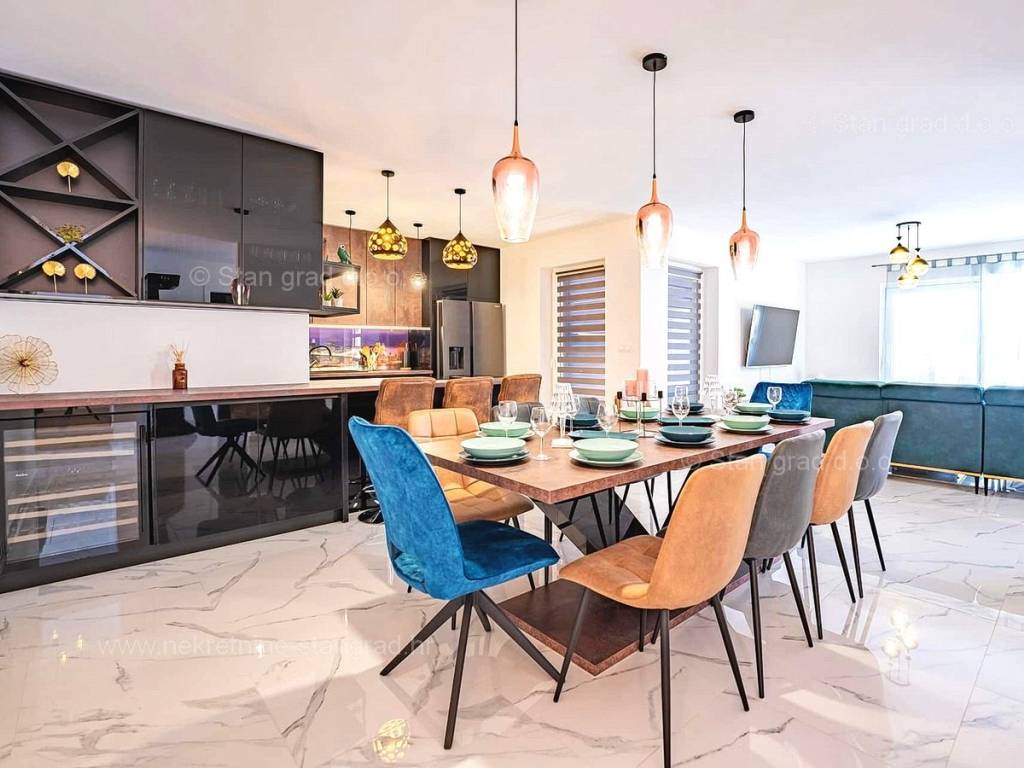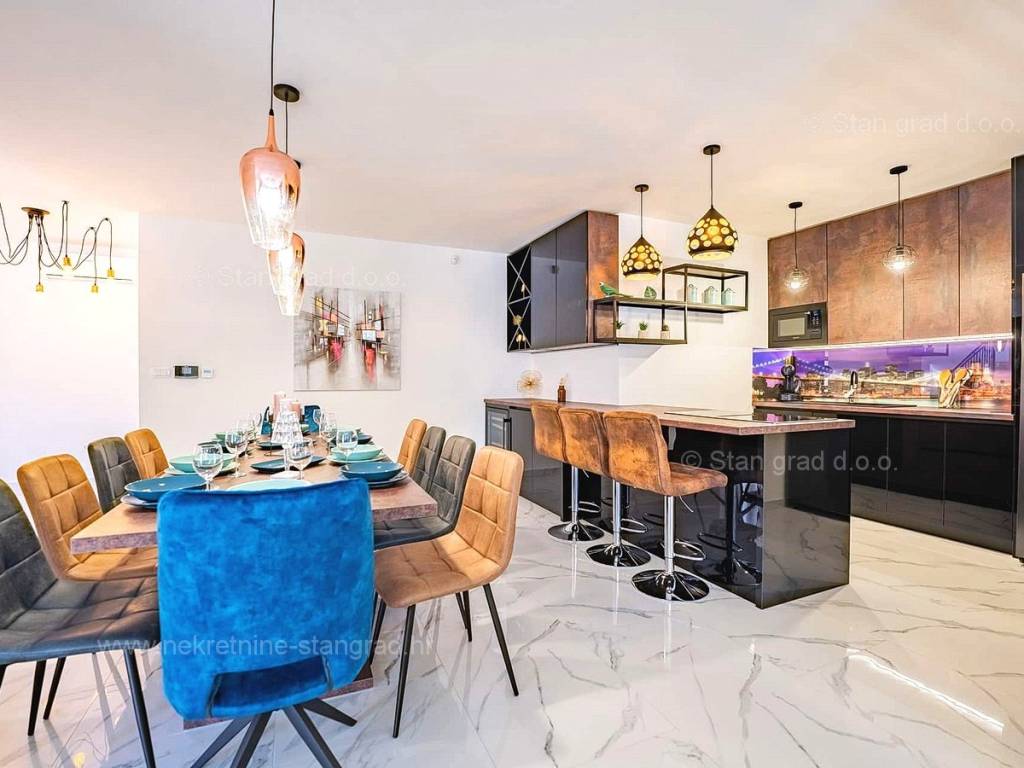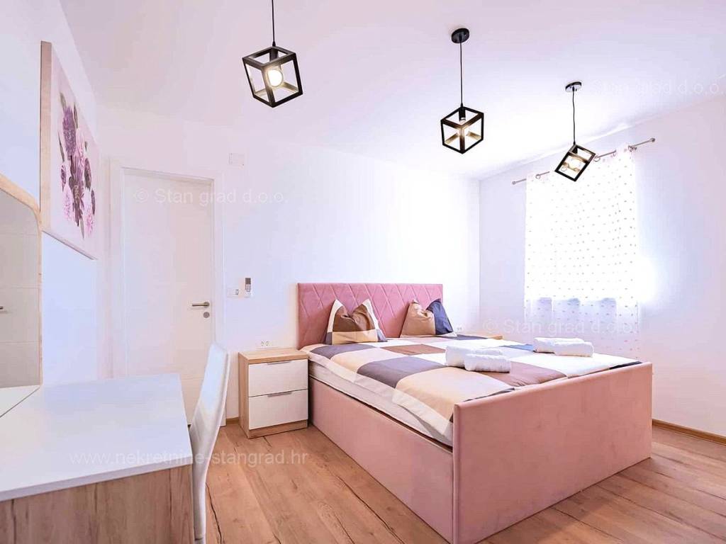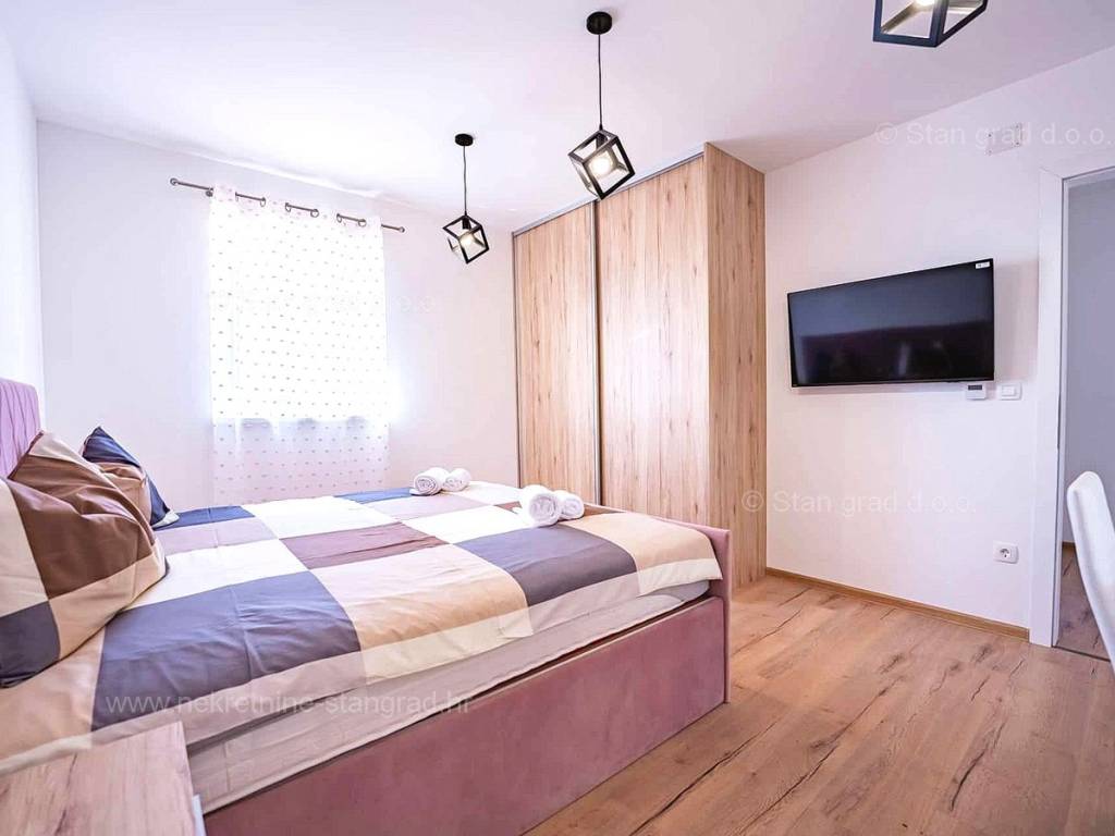 Vrlo lijepa vila je izvedena na 2 etaže. Kuća se proteže na ukupnoj površini 185 m2. U prizemlju se nalazi ulazni hodnik, blagovaona, kuhinja, dnevni boravak, wc, spavaća soba sa vlastitom kupaonicom te garderoba. Unutarnje stepenište vodi na 1. kat gdje se nalaze 3 sp. sobe, svaka sa vlastitom kupaonicom. Jedna soba ima izlaz na terasu sa koje se pruža prekrasan pogled na uređenu okolicu i prirodni krajolik. Iz dnevnog se boravka pruža izlaz na terasu, sunčalište i bazen. Visoka kvaliteta gradnje i opreme, klimatizacija u svakoj sobi, podno grijanje na dizalicu topline, troslojna stolarija sa komarnicima i prostrana okućnica za komotno parkiranje vozila.
