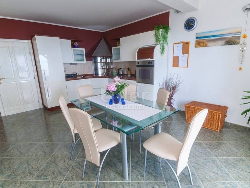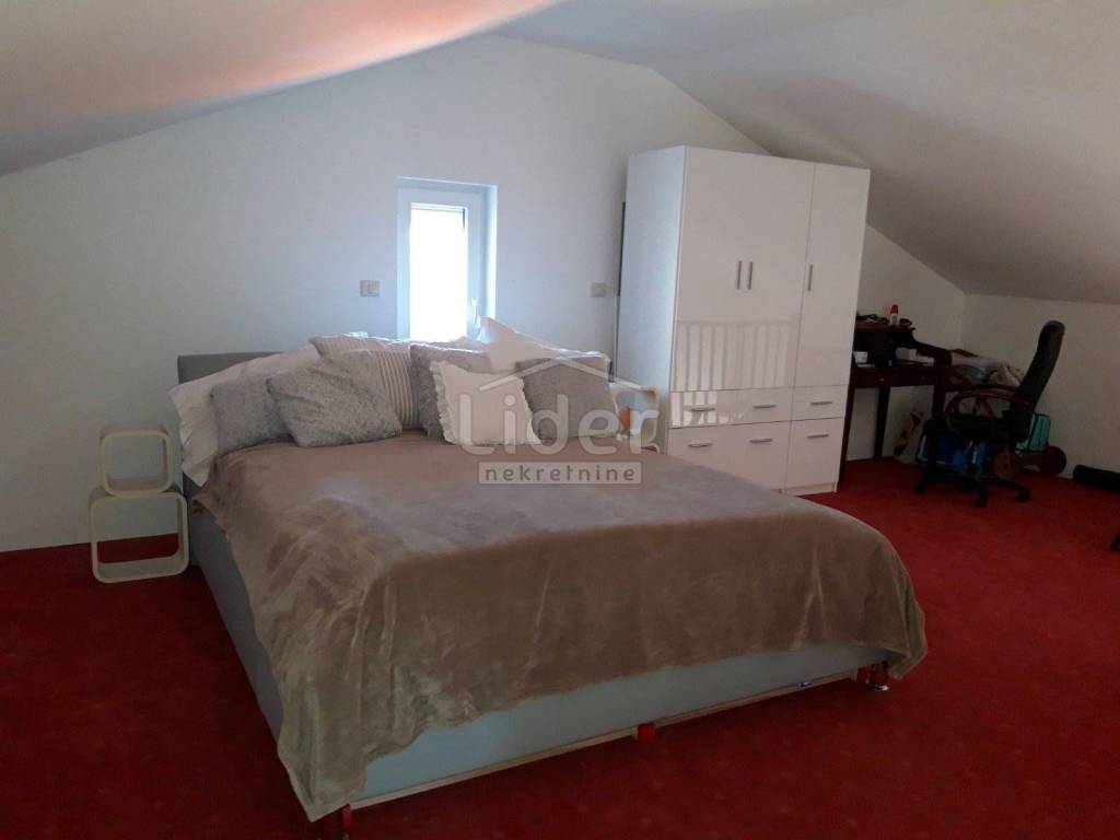 Na obroncima iznad Lovrana, prodajemo kuću sa dvoetažnim stanom koji je u funkciji dvije stambene jedinice. U prizemlju se nalazi stan 1-sobni sa dnevnim boravkom i terasom , a unutarnje stepenice vode na kat gdje je 2-sobni sa dnevnim boravkom i dvije terase. Etažirano je na način da su oba stana povezana unutarnjim stepeništem, ali također svaki stan ima zaseban ulaz. Kuća ima i garažu u koju je moguće parkirati 3 automobila, a ispred garaže ima prostora za još toliko. Kuća ima priključak na kanalizaciju... Dokumentacija uredna.