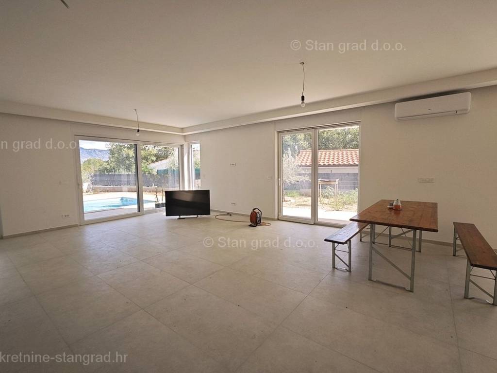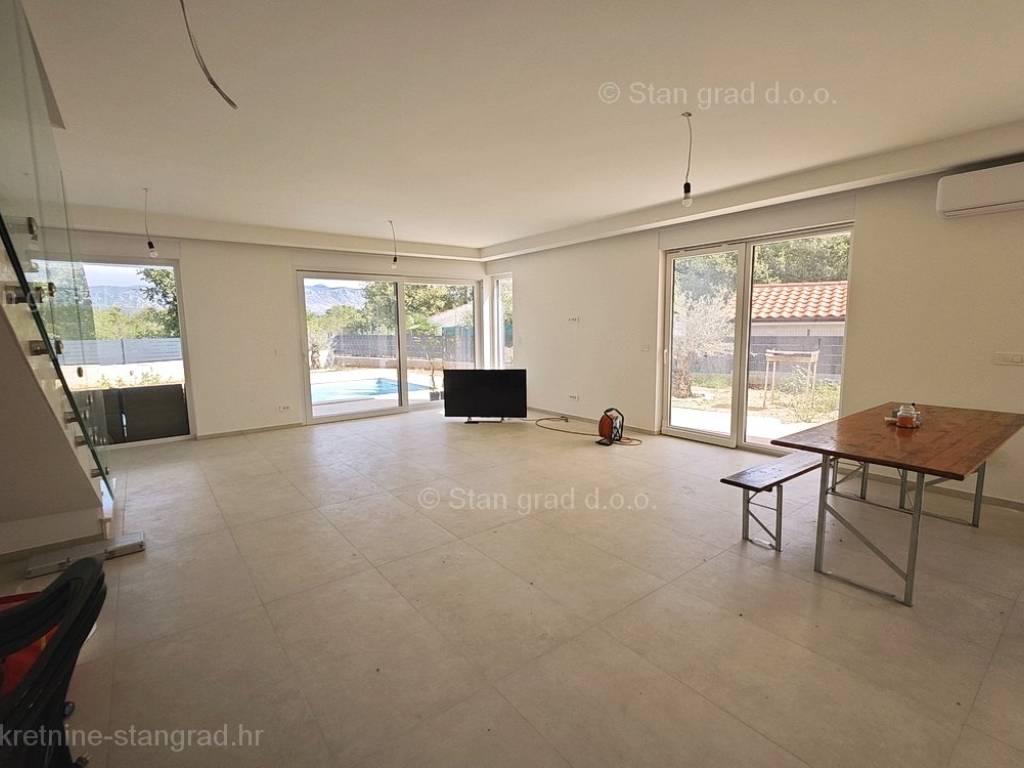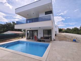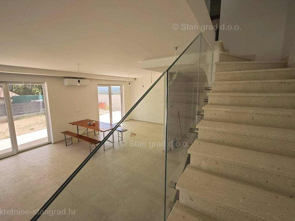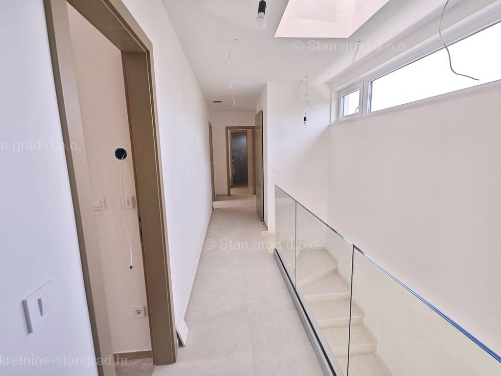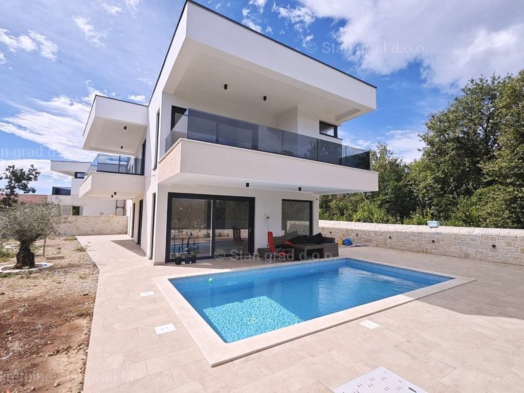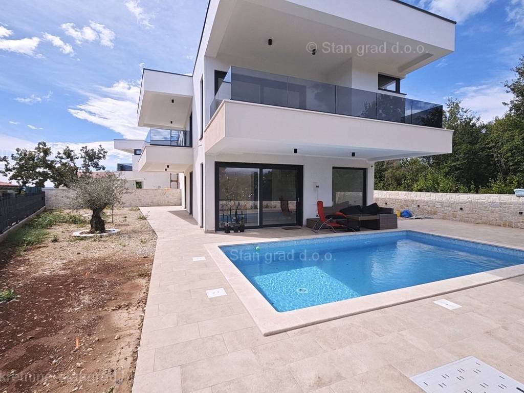 U ponudi Agencija Stan Grad Immobilien prodaje se moderna dvojna kuća savršena za odmor u regiji otok Krk. Ova prekrasna dvojnica je na super lokaciji blizu mora i centra mjesta Njivice. Unutar luksuzno izgrađenog objekta, dio stana se nalazi u prizemlju a dio na prvom katu. Površina nekretnine iznosi ukupno 190,00 m2, međusobno povezanih unutarnjim stepeništem. U prizemlju je predviđena konoba, ulazni prostor, kupaonica, prostrani, open space dnevni boravak s kuhinjom i blagovaonicom, s izlazom na terasu i okućnicu s bazenom i sunčalištem. Prvi kat sastoji se od hodnika, četiri spavaće sobe i tri kupaonice, od kojih dvije spavaće sobe imaju i garderobni prostor, te izlaze na balkone. Kuću karakterizira funkcionalan raspored prostorija, moderan dizajn, kvalitetna gradnja, klimatizacija svih prostorija, grijanje preko dizalice topline, PVC stolarija, priprema za alarmi sustav. Vlasništvo apartmana obuhvaća raspolaganje 2 parkirna mjesta. Ova nekretnina je u vlasništvu fizičke osobe i na ime njezinog prijenosa kupac je u obvezi plaćanja poreza na promet nekretnine u visini 3%. Prodavatelj apartmana garantira kompletne vlasničke dokumente i uredan prijenos nekretnine. Agenti posredničkog ureda Stan Grad Immobilien pomoći će vam u kupoprodaji i prijenosu vlasništva apartman. Prodaja po sistemu "ključ u ruke", očekivano useljenje proljeće 2023. godine.