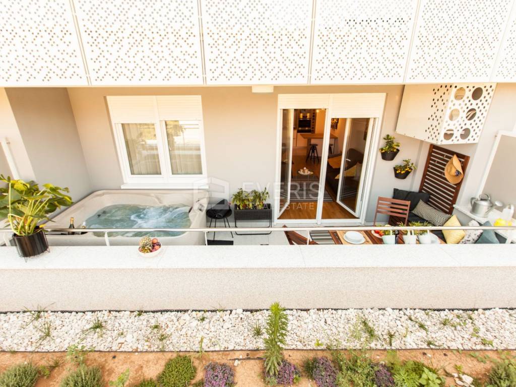 Na terasi se nalazi jacuzzi za uživanje. Nekretnina je kompletno namještena te spremna za useljenje.