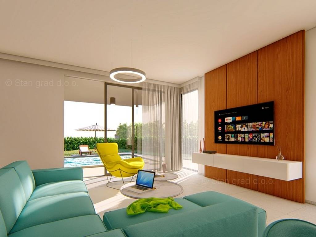 U okviru kvarnerske ponude nekretnina kod agencije Stan Grad Immobilien se prodaje dizajnerski projektirana i moderno građena turistička kuća u sjevernojadranskoj mediteranskoj regiji Otok Krk. Ova poželjna kuća se nalazi na vrlo dobroj lokaciji blizu centra poznatog turističkog odredišta Omišalj. Strukturno, ovo je dvojna kuća katnica s bazenom i okućnicom. Ukupna površina kuće iznosi 185 m2. Sastoji se od prizemlja i kata povezanih unutarnjim stepeništem. U prizemlju se nalazi konoba, ulazni prostor, kupaonica, prostrani, open space dnevni boravak s kuhinjom i blagovaonicom, s izlazom na terasu i okućnicu. Prvi kat sastoji se od hodnika, četiri spavaće sobe i tri kupaonice, od kojih dvije spavaće sobe imaju i garderobni prostor, te izlaze na balkone. Vlasništvo ove kuće obuhvaća vrlo lijepo uređenu i oplemenjenu okućnica s bazenom i sunčalištem. Dvorište nekretnine obuhvaća mjesto uređeno za komotno parkiranje 2 vozila. Vlasnik ove nekretnine je fizička osoba te se prilikom prijenosa njenog vlasništva kupcu obračunava porez na promet nekretnine u iznosu 3%. Prodavatelj nekretnine jamči urednu građevinsku i vlasničku dokumentaciju te brz prijenos nekretnine na ime kupca. Bit će nam zadovoljstvo primiti vas i uslužiti na otoku Krku. Odlučite li se za nas, agencija Stan Grad Immobilien će vam sa zadovoljstvom pomoći u prijenosu vlasništva nekretnine, kao i računa za struju, vodu i komunalne usluge na svoje ime.