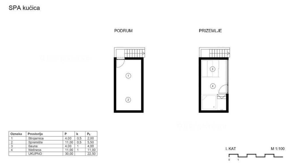 Gledajući strukturno, ovo je samostojeća kuća katnica s prostranom okućnicom i bazenom. Sama kuća obuhvaća cjelokupnu, stvarno korisnu površinu od 215,19 m2. Kuća se sastoji u prizemlju od ulaznog prostora, hodnika, wc-a, kupaonice, sobe s izlazom na nenatkrivenu terasu, tehničke sobe, kuhinje s blagovaonicom te prostranim dnevnim boravkom s izlazom na natkrivenu terasu sa vanjskom kuhinjom i gril prostorom. Na katu vile se nalaze 3 prostrane spavaće sobe, od kojih je jedna sa vlastitom kupaonom, walk-in tuš kabinom. Mogućnošću izlaska na vanjsku terasu je iz sve tri sobe, dok preostale dvije sobe dijele jednu kupaonicu. Uz opisanu nekretninu je vezana i dobro organizirana okućnica s pomoćnim objektom ukupne površine 22,5 m2. U predmetnom objektu je 15 m2 rezervirano za SPA sadržaj u prizemlju, koji uključujući saunu, jacuzzi i wellness prostor za opuštanje, a preostalih 7,5 m2 namijenjeno je za spremište u podrumu objekta.