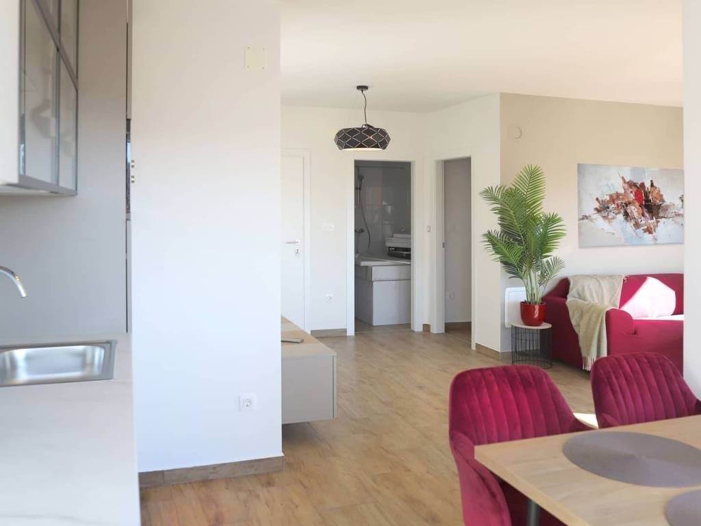 Na prodaju je luksuzna kuća udaljena 1100 m od centra Malinske i mora. Kuća je luksuzno opremljena te se sastoji od 4 apartmana. Svaki je veličine 40-ak m2 sa terasom i svojim parkirnim mjestom. Sa terasa na katu pruža se pogled na Malinsku i more. Apartmani su jednosobni i kuća je u fazi dobivanja uporabne dozvole.