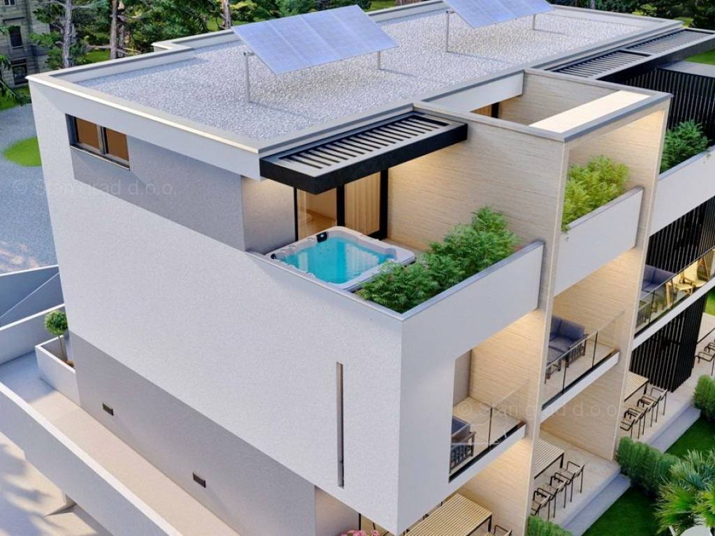 NOVOGRADNJA - OTOK KRK!! Grad Krk, na dobroj lokaciji 300 m od mora, prodaje se apartman u kvalitetnoj novogradnji. Ovaj lijep luksuzni apartman proteže se na tri etaže. U prizemlju se nalazi ulazni prostor, kuhinja, blagovaona, terasa s izlazom na vrt, wc te stepenište koje vodi na prvi kat. Na prvom katu se nalaze dvije spavaće sobe, od kojih jedna ima izlaz na balkon, kupaonica te stepenište za drugi kat. Na drugom katu se nalazi galerija s kupaonicom te terasom, na kojoj se nalazi jacuzzi. Ovaj izniman stan bit će opremljen vrhunskom opremom poput podnog grijanja, klimatizacije i sustava pametne kuće. Ovaj funkcionalni koncept omogućava novim vlasnicima pogled na grad Krk i more. Vlasniku ovog stana pripadat će jedno garažno mjesto te jedan vanjski parking. U blizini ove nekretnine nalaze se svi potrebni sadržaji za ugodan odmor: plaža, trgovina, šetnica. U cijeni je sadržan i PDV što znači da je kupac oslobođen plaćanja bilo kakvog poreza a prodavatelj jamči čiste vlasničke dokumente. Posjetite nas na otoku Krku i pobrinut ćemo se da osjetite zadovoljstvo svih naših klijenata. Odlučite li se za nas, agencija Stan Grad Immobilien će vam sa zadovoljstvom pomoći u prijenosu vlasništva nekretnine, kao i računa za struju, vodu i komunalne usluge na svoje ime. Planirani završetak radova je prosinac 2023g.